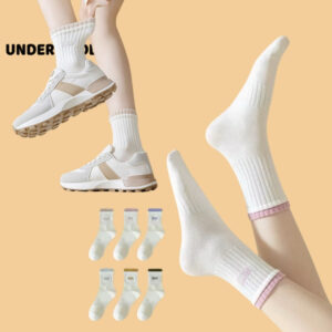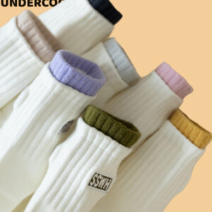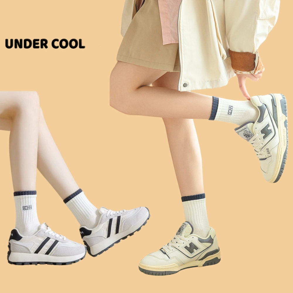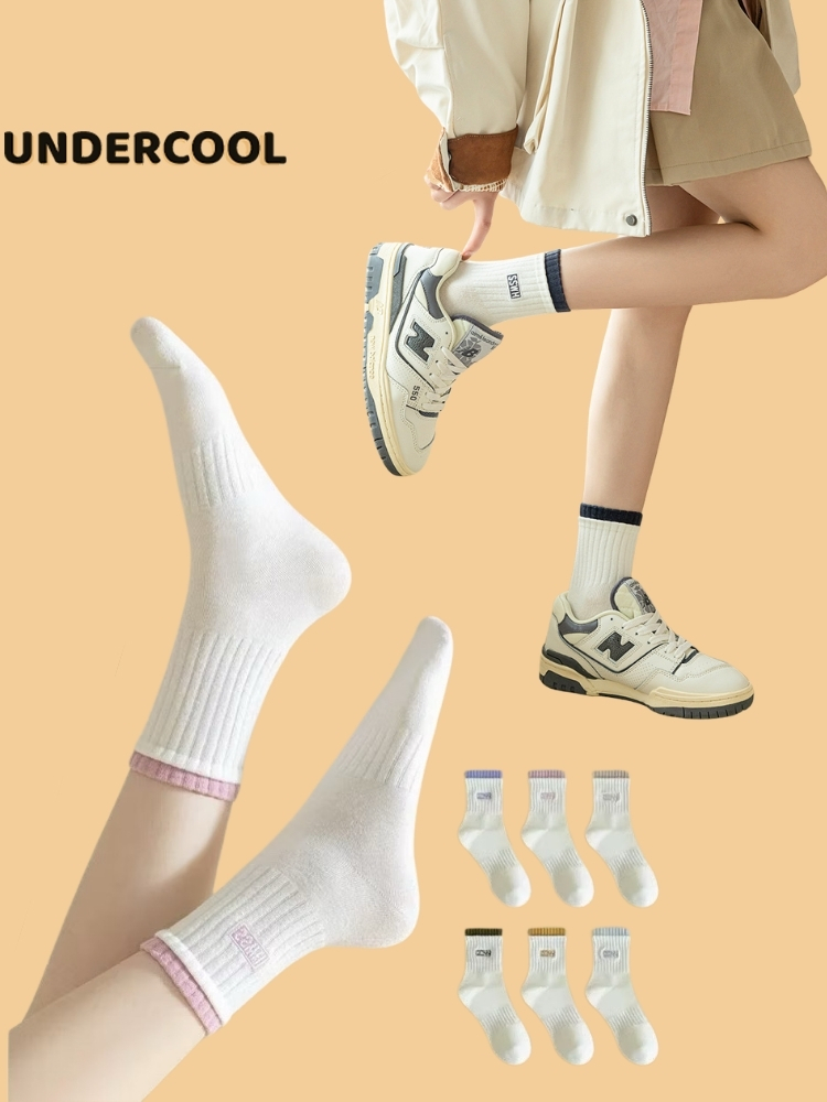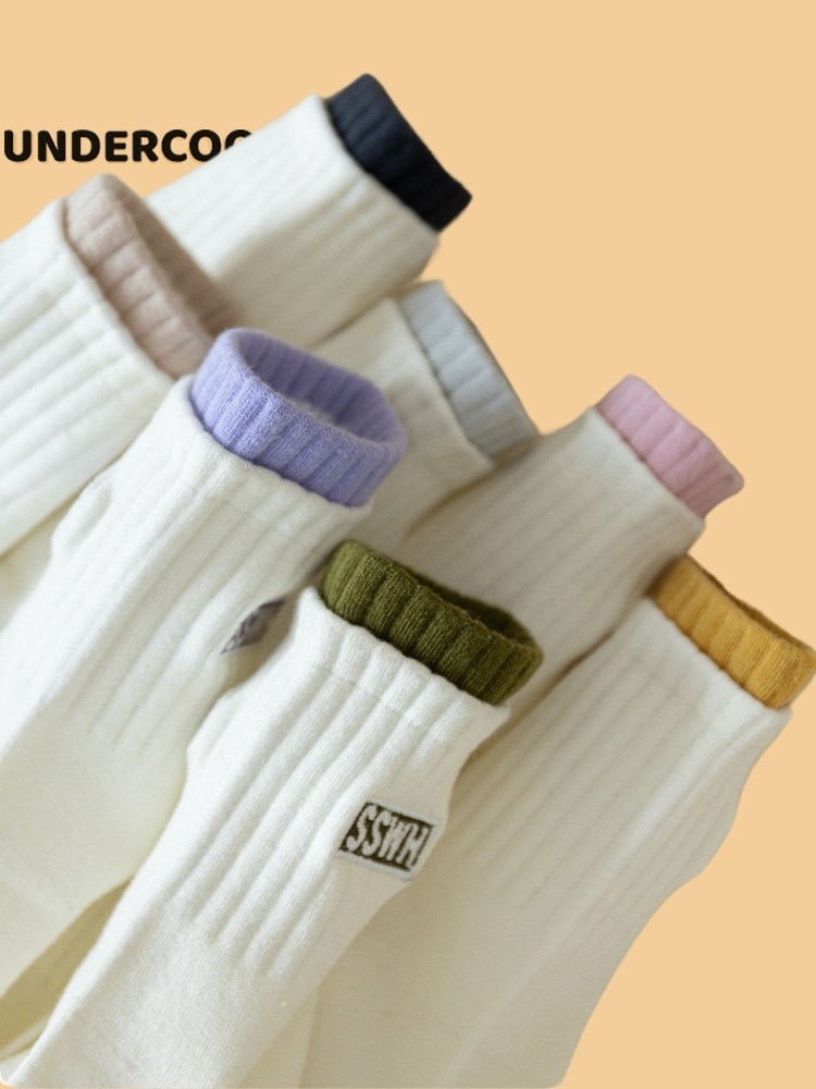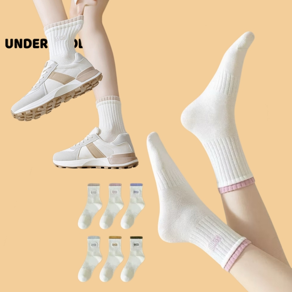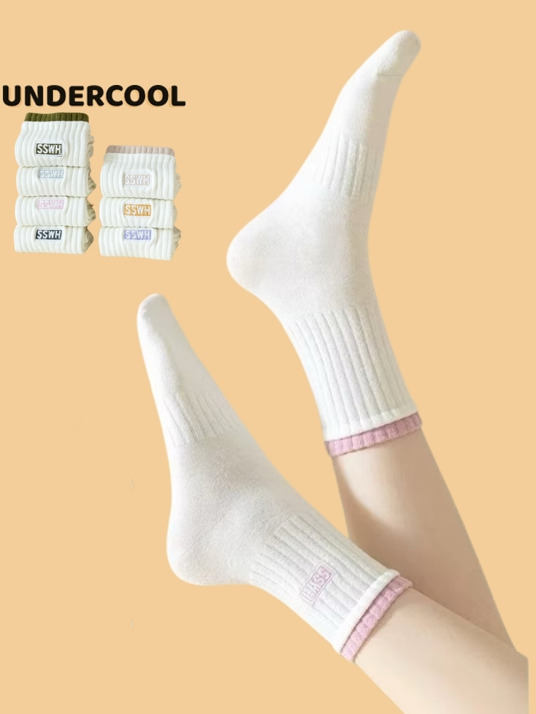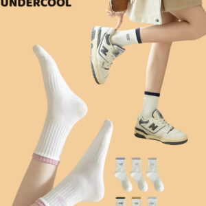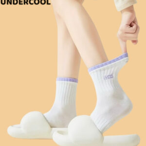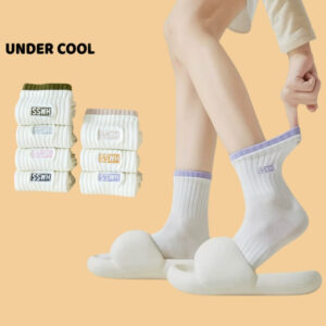 Set 5 Đôi Tất Vớ cho Nữ Cotton Cao Cổ UNDERCOOL Phối Viền Màu Họa Tiết In Chữ TC66