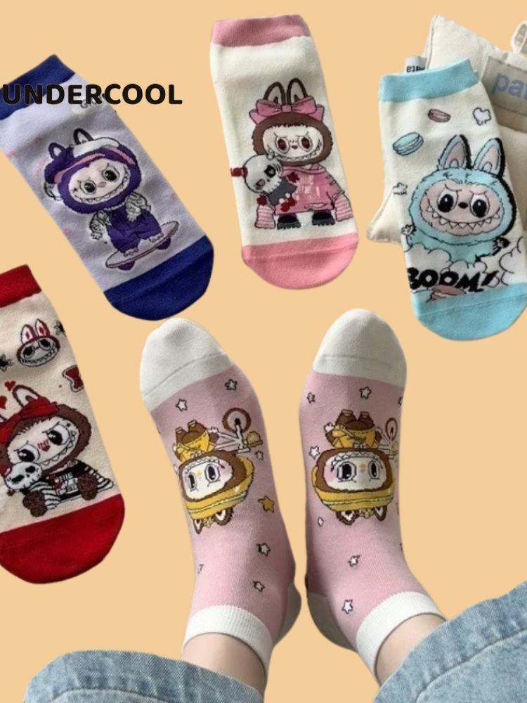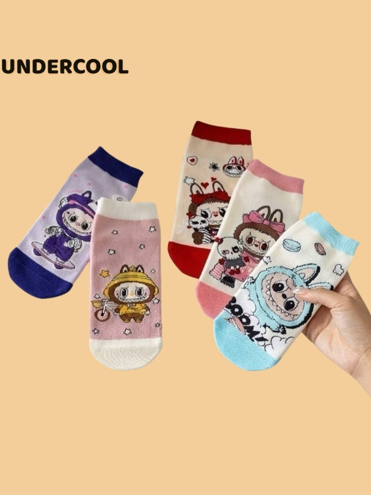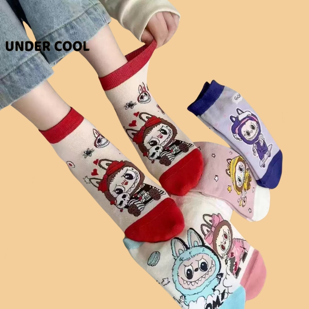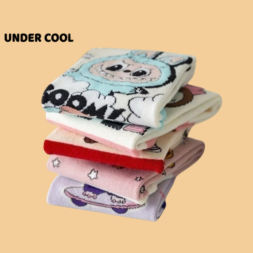Set 5 Đôi Tất Vớ Cotton LABUBU dễ thương dành cho bé trai, bé gái Unisex Mềm mại thoáng khí UNDERCOOL TC56