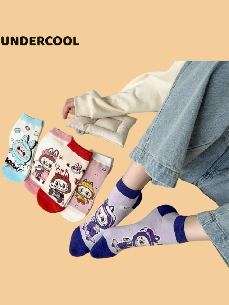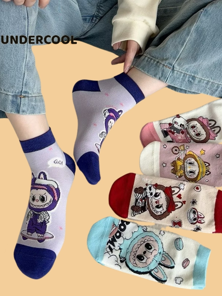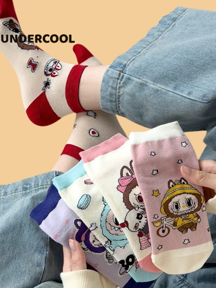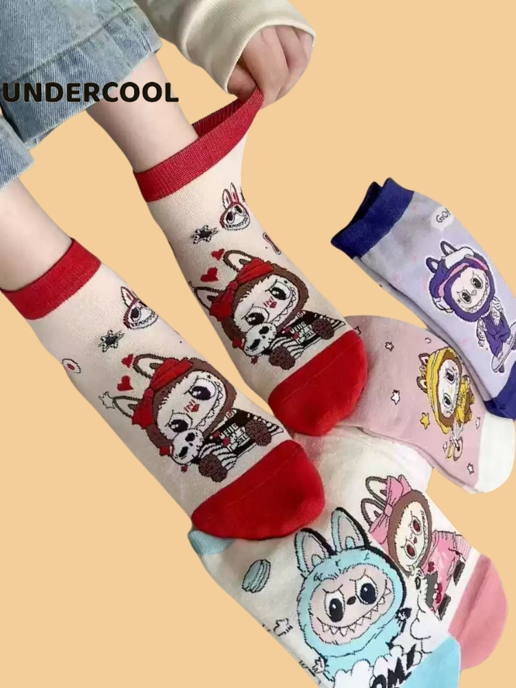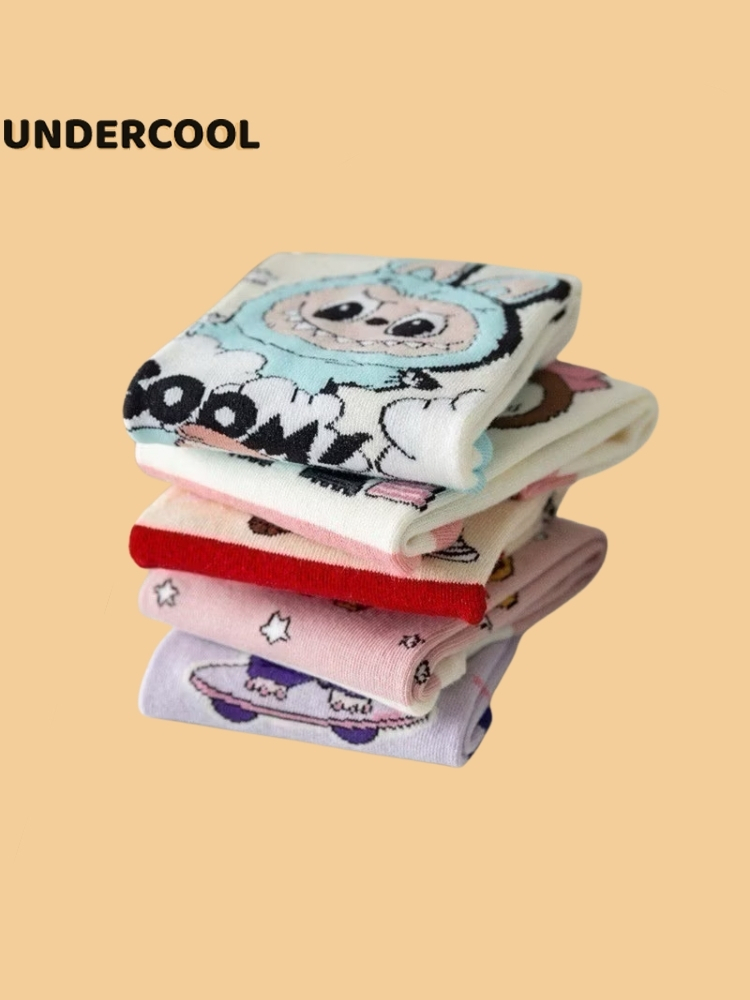 Set 5 Đôi Tất Vớ Cotton LABUBU dễ thương dành cho bé trai, bé gái Unisex Mềm mại thoáng khí UNDERCOOL TC56