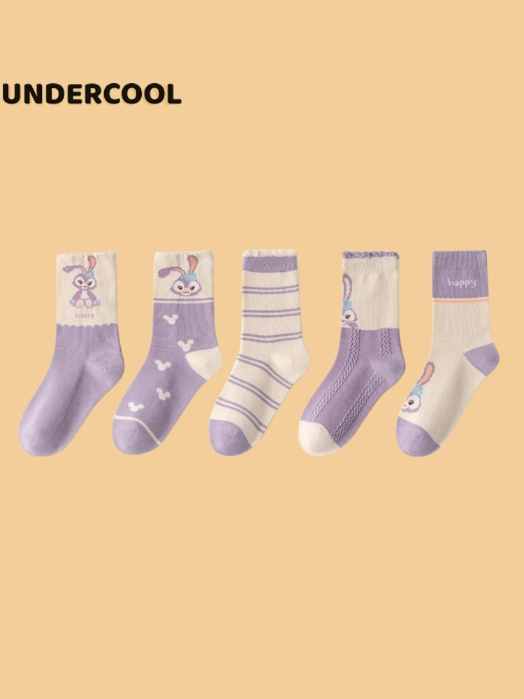 SET 5 đôi tất thỏ tím dành cho bé UNDERCOOL tone màu hot phong cách Nhật Bản