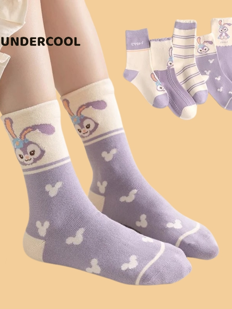 Set 5 Đôi Tất Vớ Cổ Cao Thỏ Tông Màu Tím Hot Hit Phong Cách Nhật Bản
