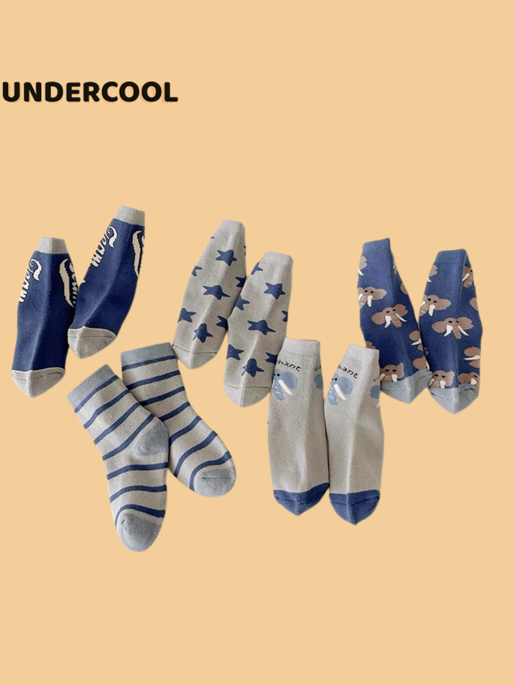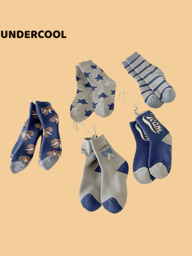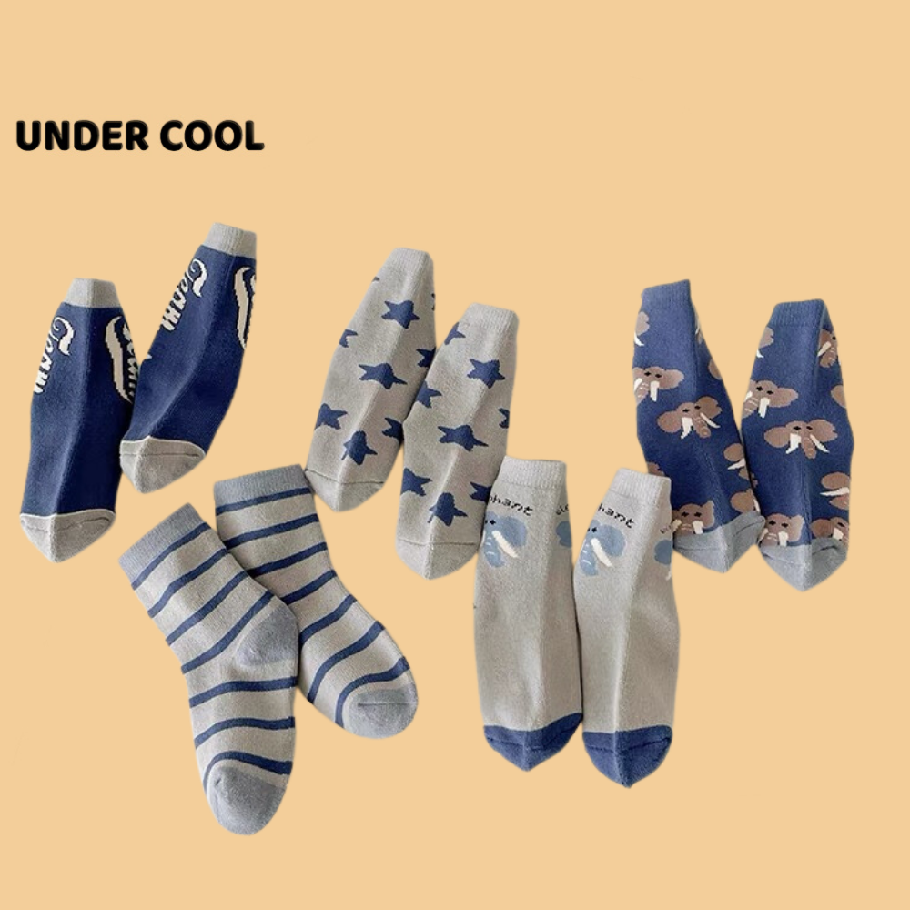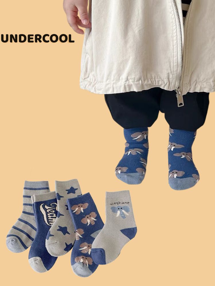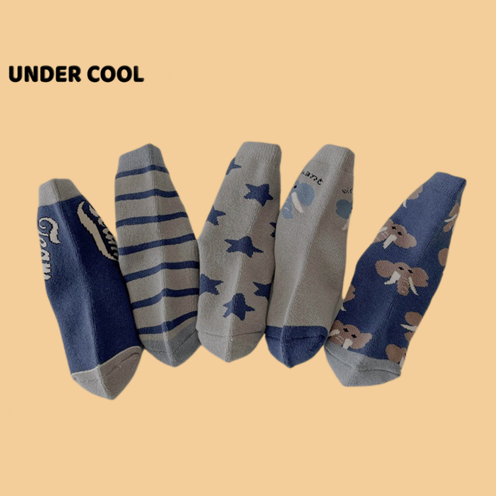 Set 5 Đôi Tất Trẻ Em Tone Xanh UNDERCOOL Hoạ Tiết Voi Xanh Bé Trai