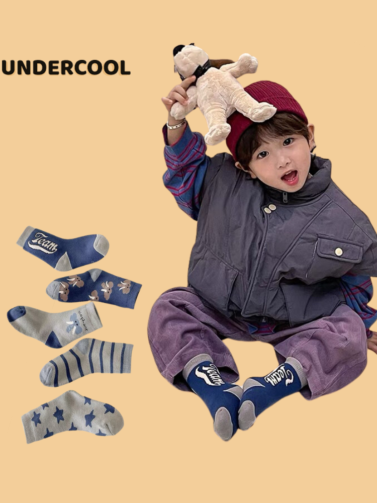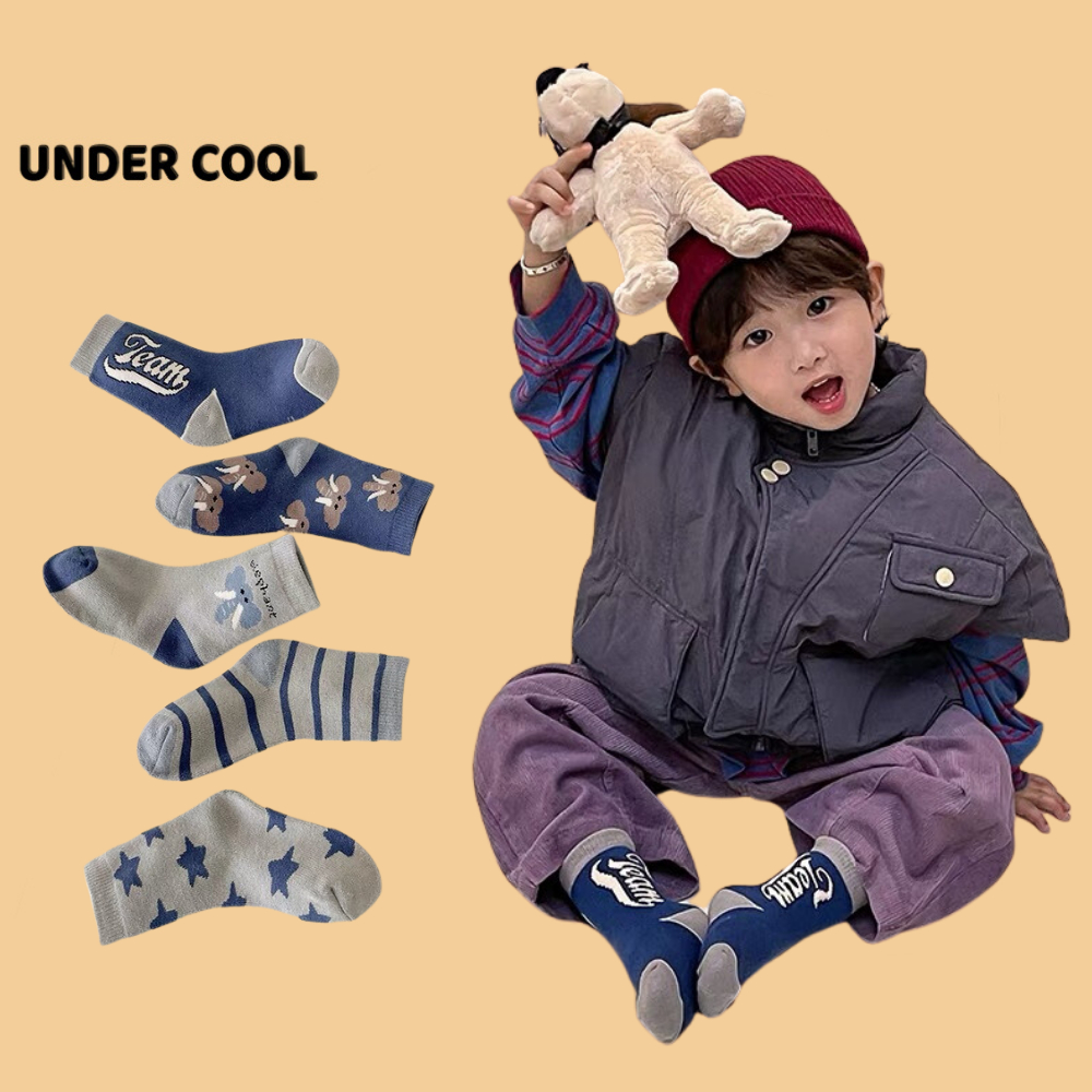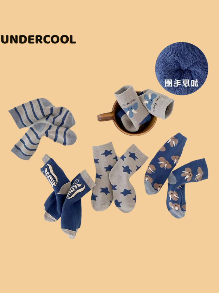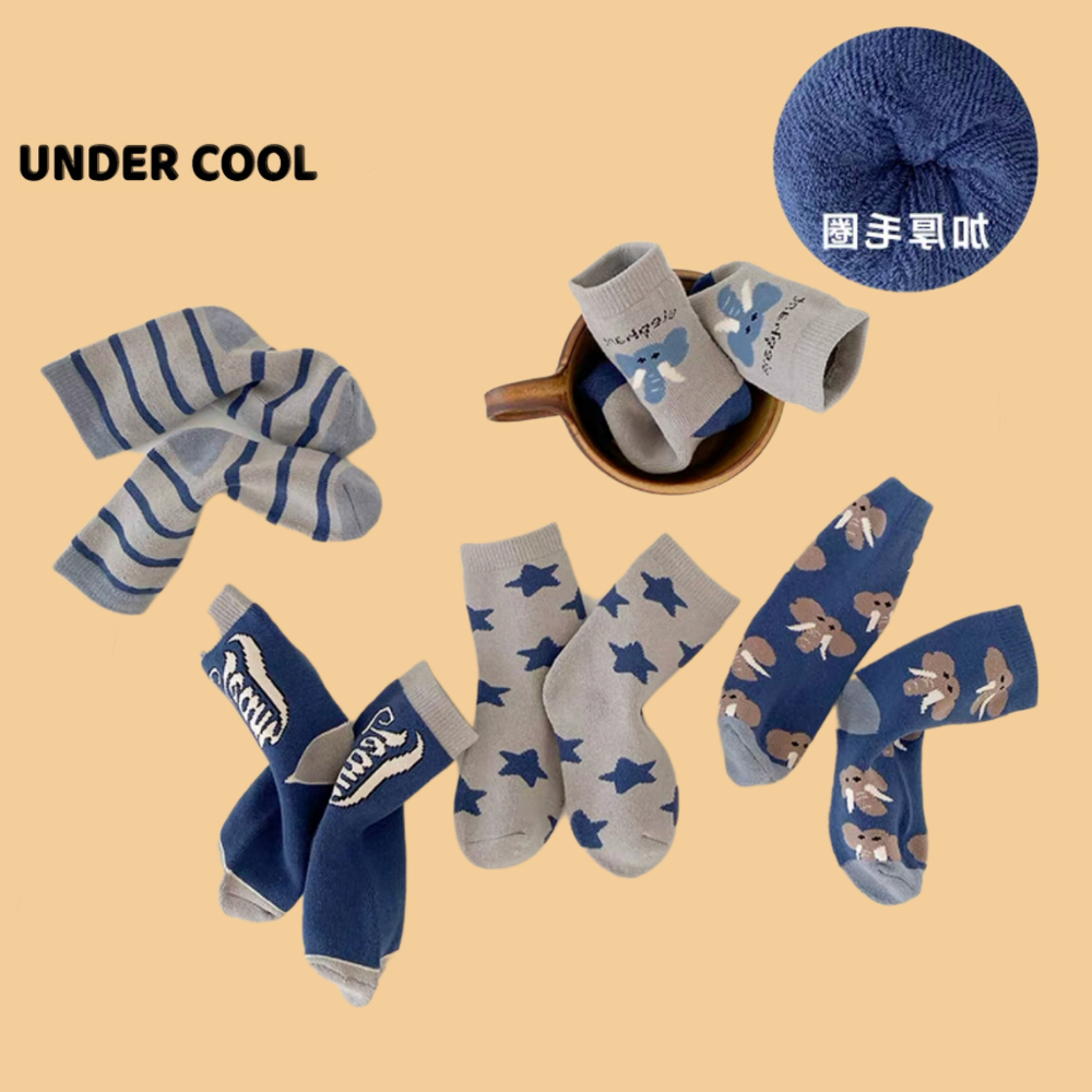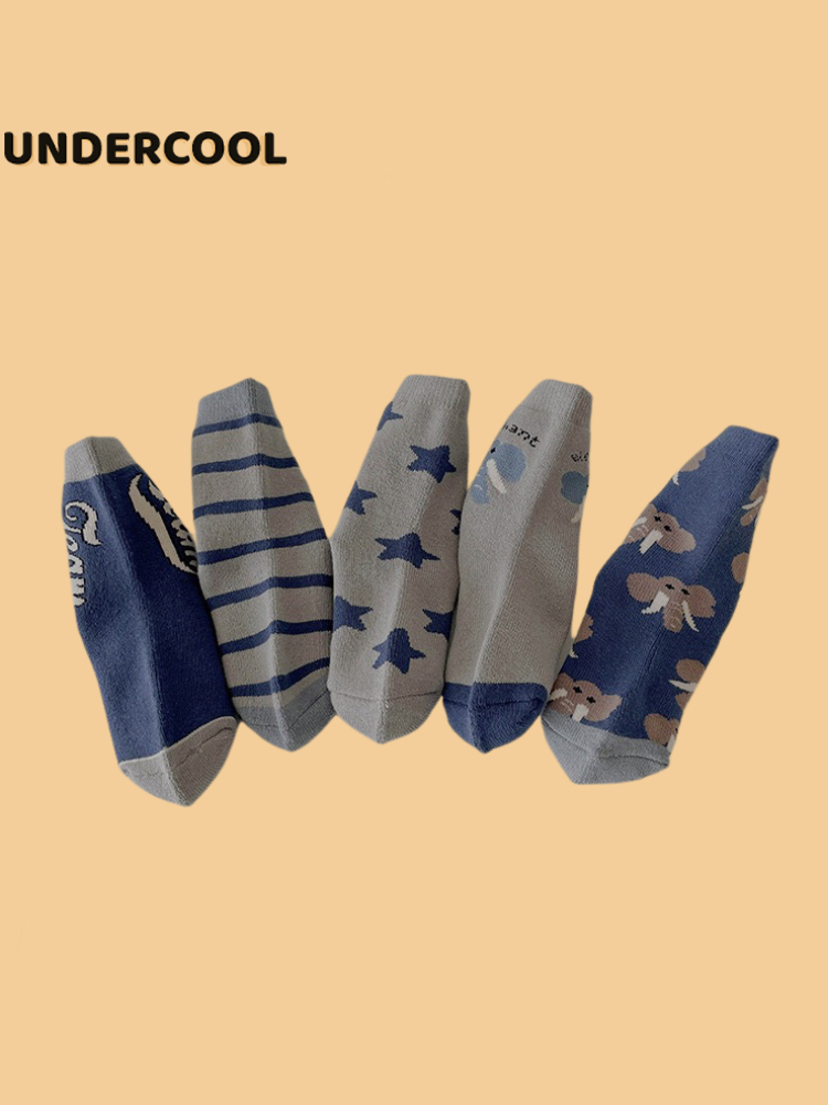 Set 5 Đôi Tất Trẻ Em Tone Xanh UNDERCOOL Hoạ Tiết Voi Xanh Bé Trai