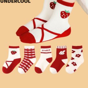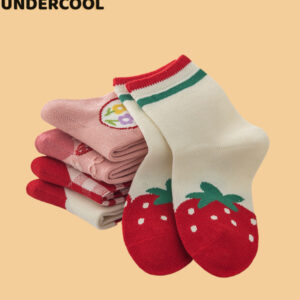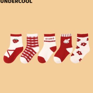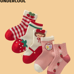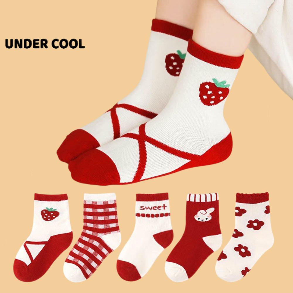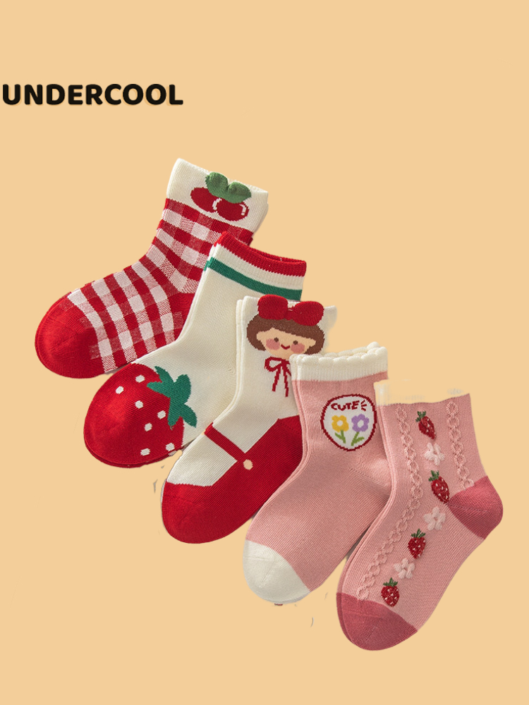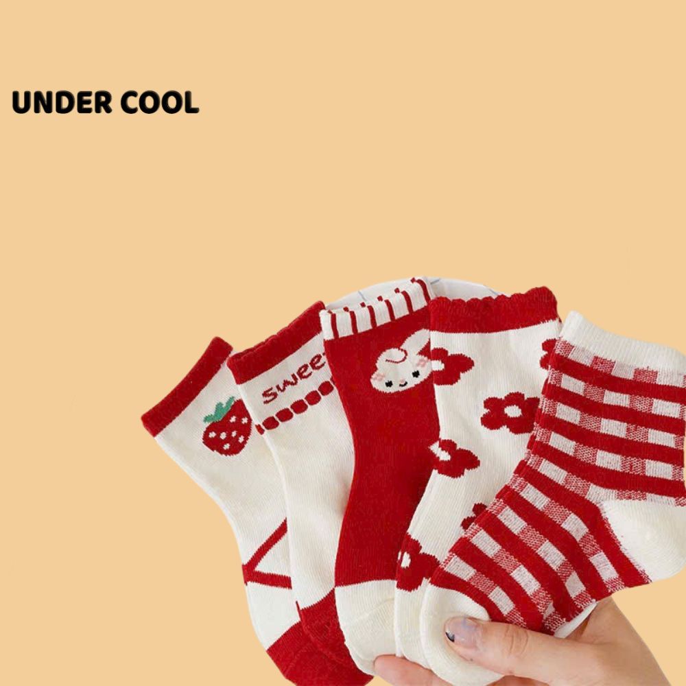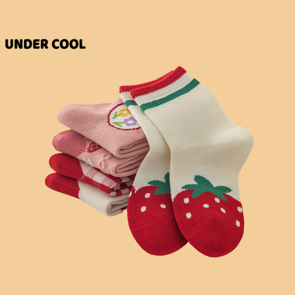 Set 5 Đôi Tất Bé Gái UNDERCOOL Tone Màu Hồng Hoạ Tiết Dâu Tây Kẻ Caro