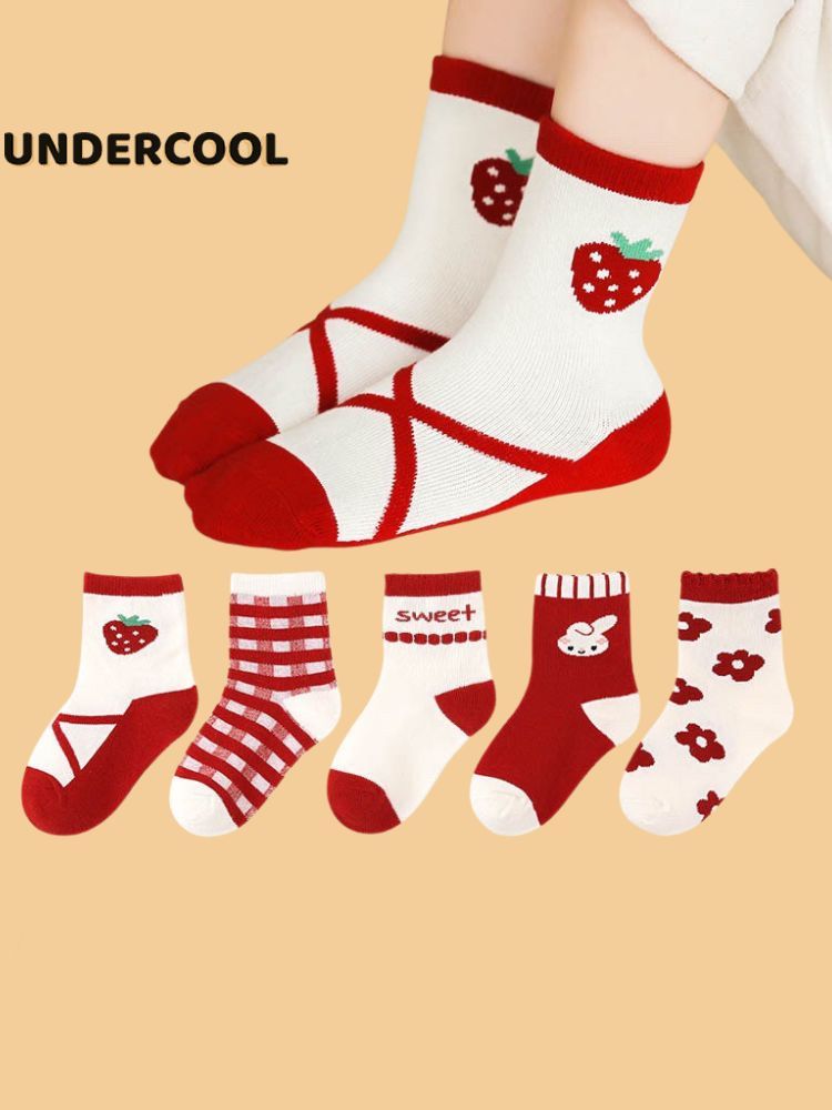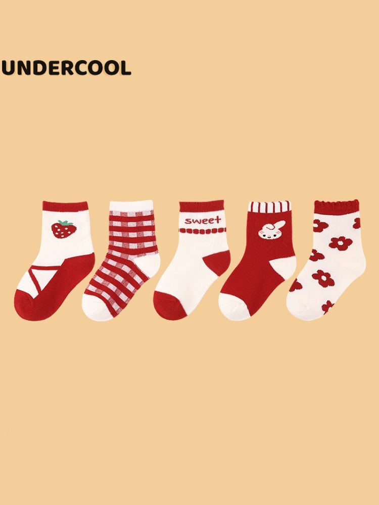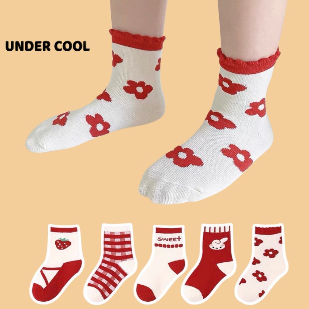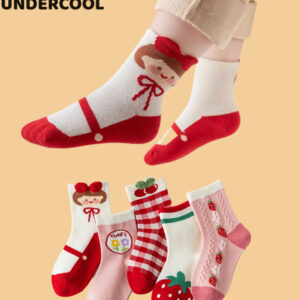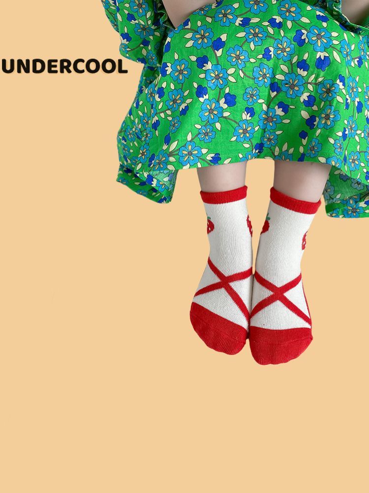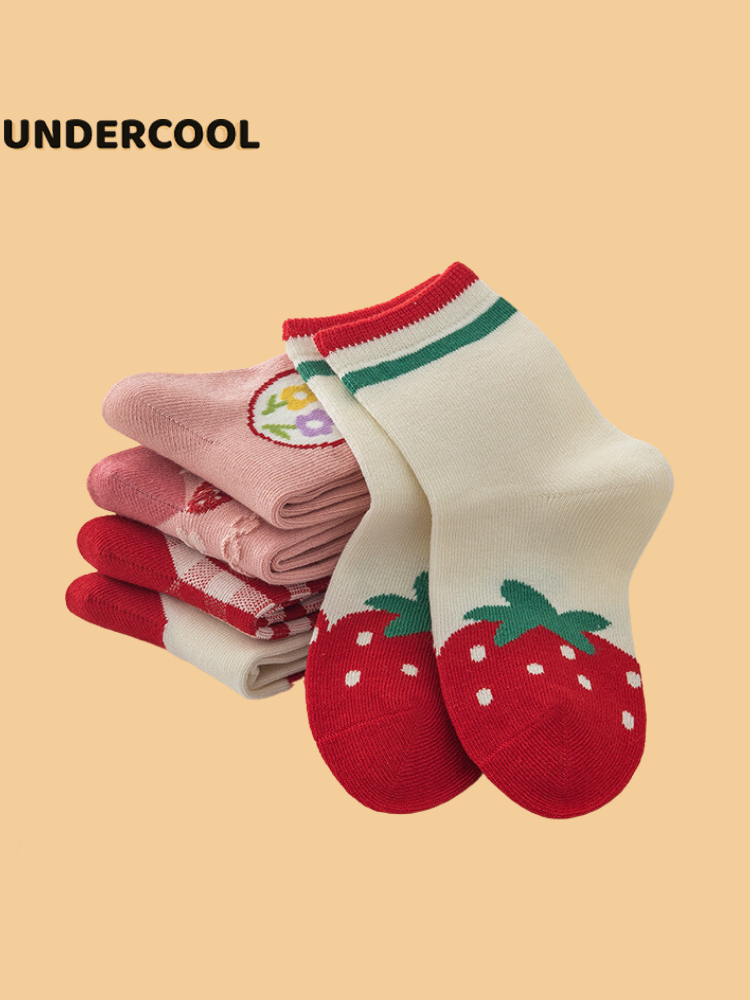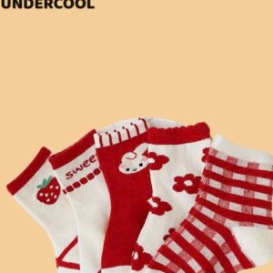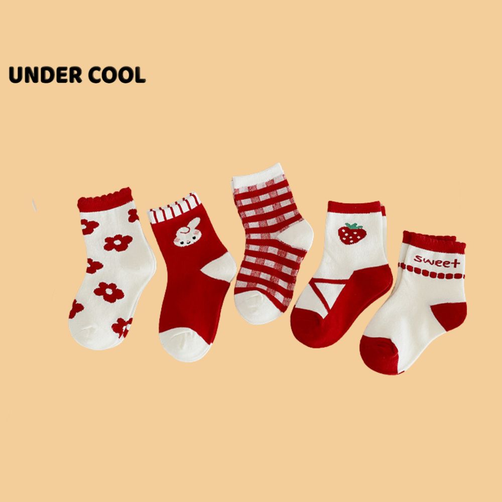 Set 5 Đôi Tất Bé Gái UNDERCOOL Tone Màu Hồng Hoạ Tiết Dâu Tây Kẻ Caro