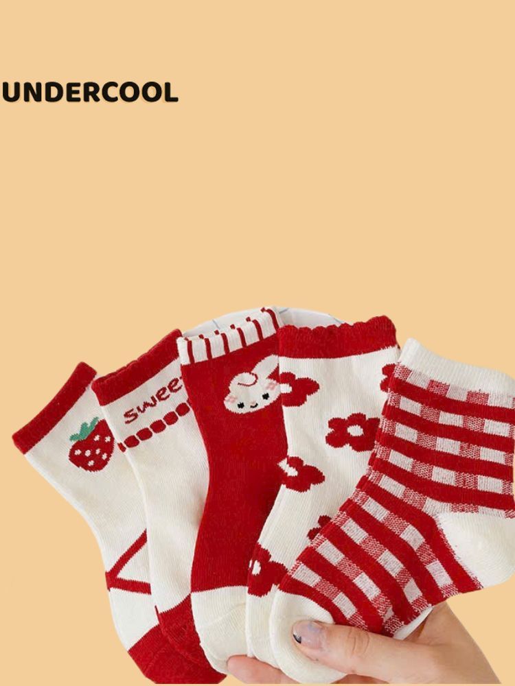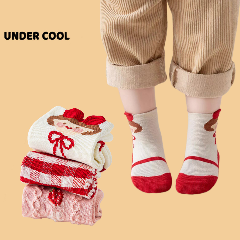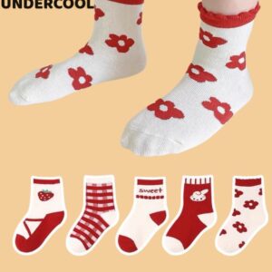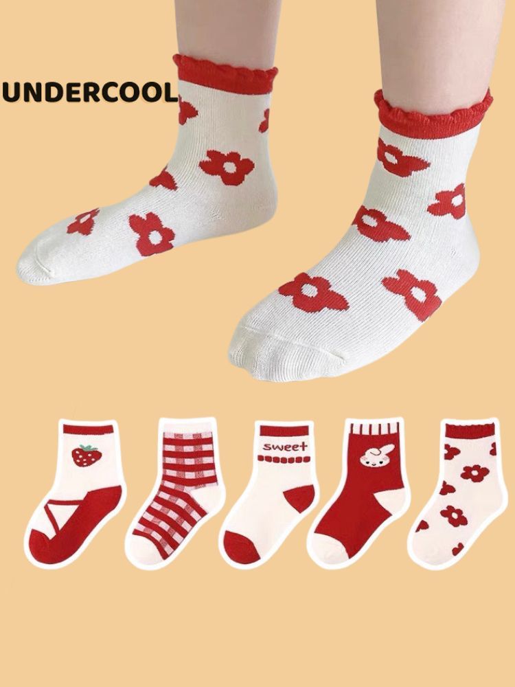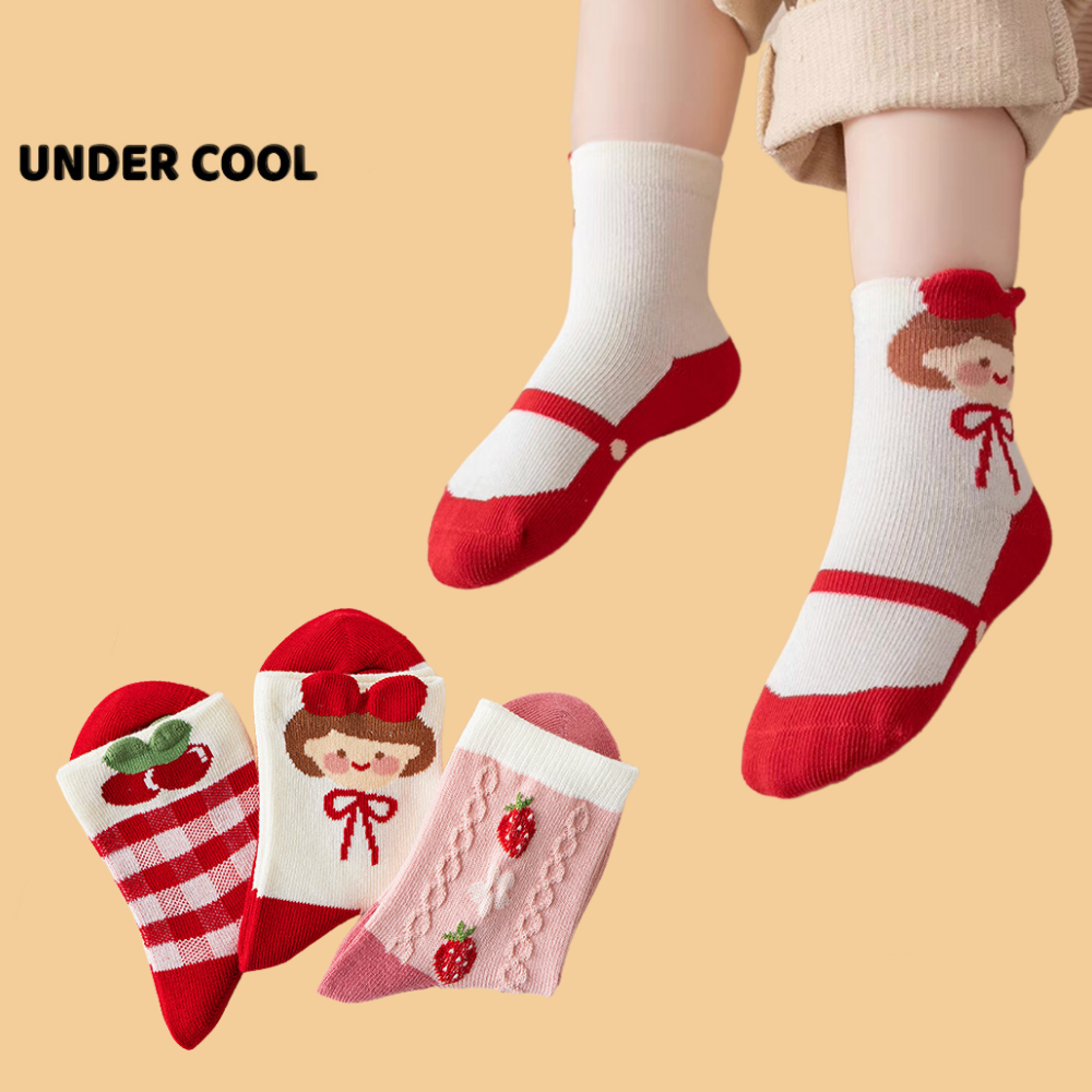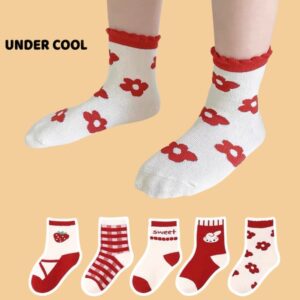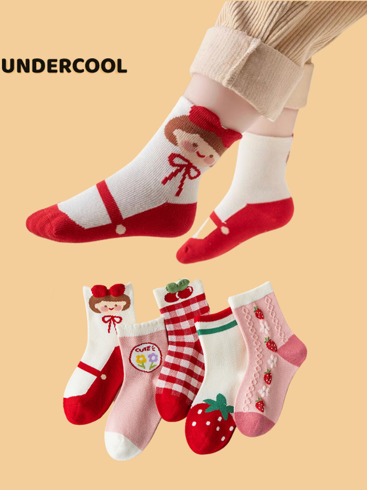 Set 5 Đôi Tất Bé Gái UNDERCOOL Tone Màu Hồng Hoạ Tiết Dâu Tây Kẻ Caro