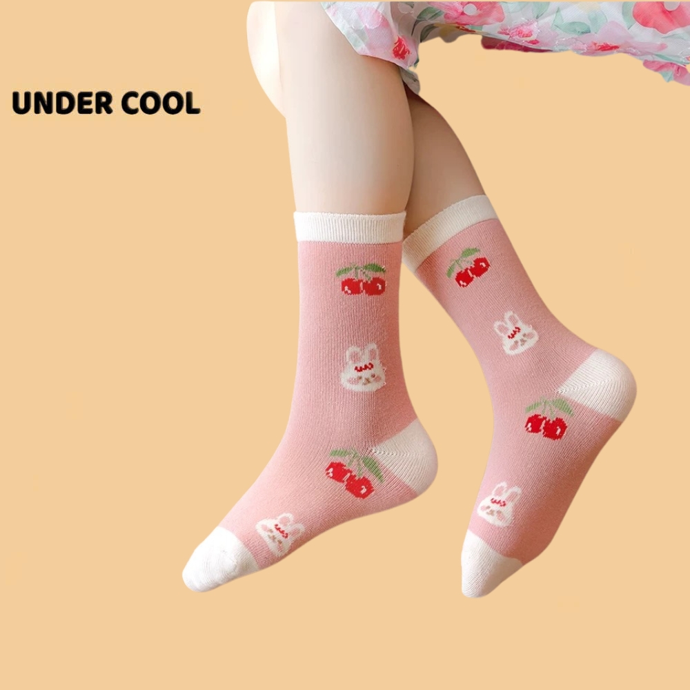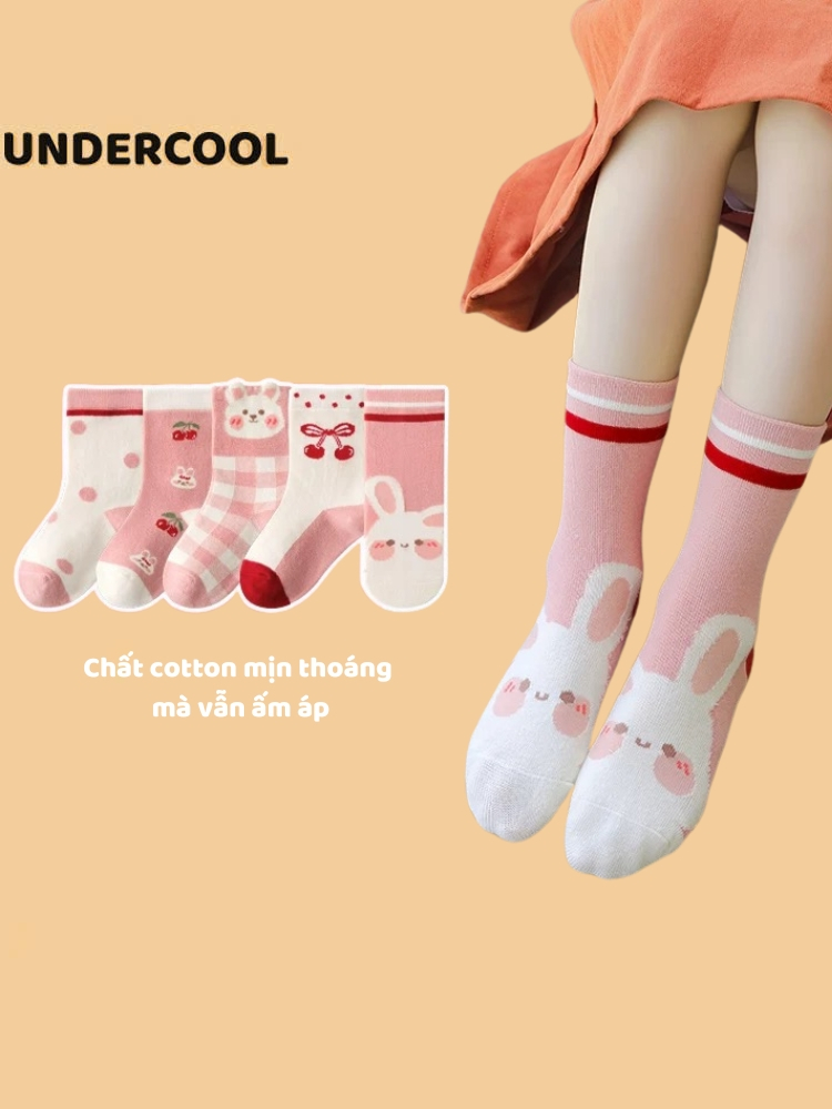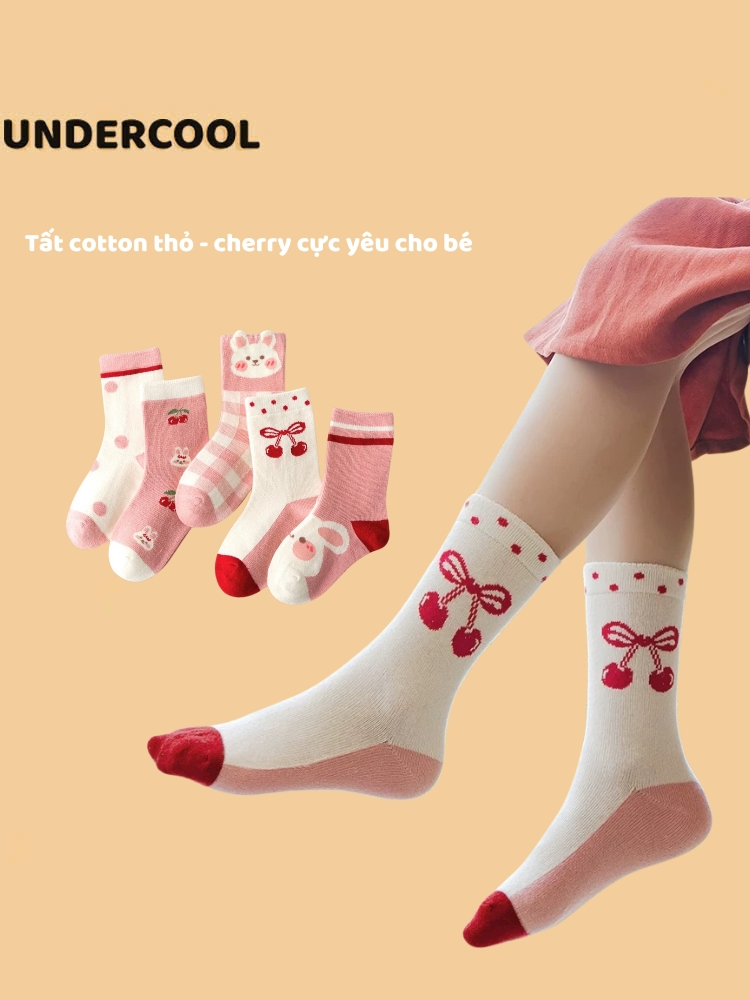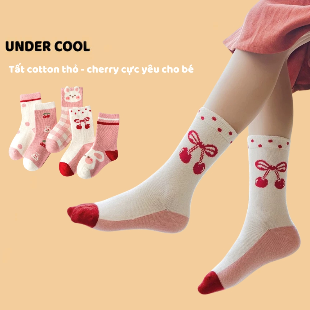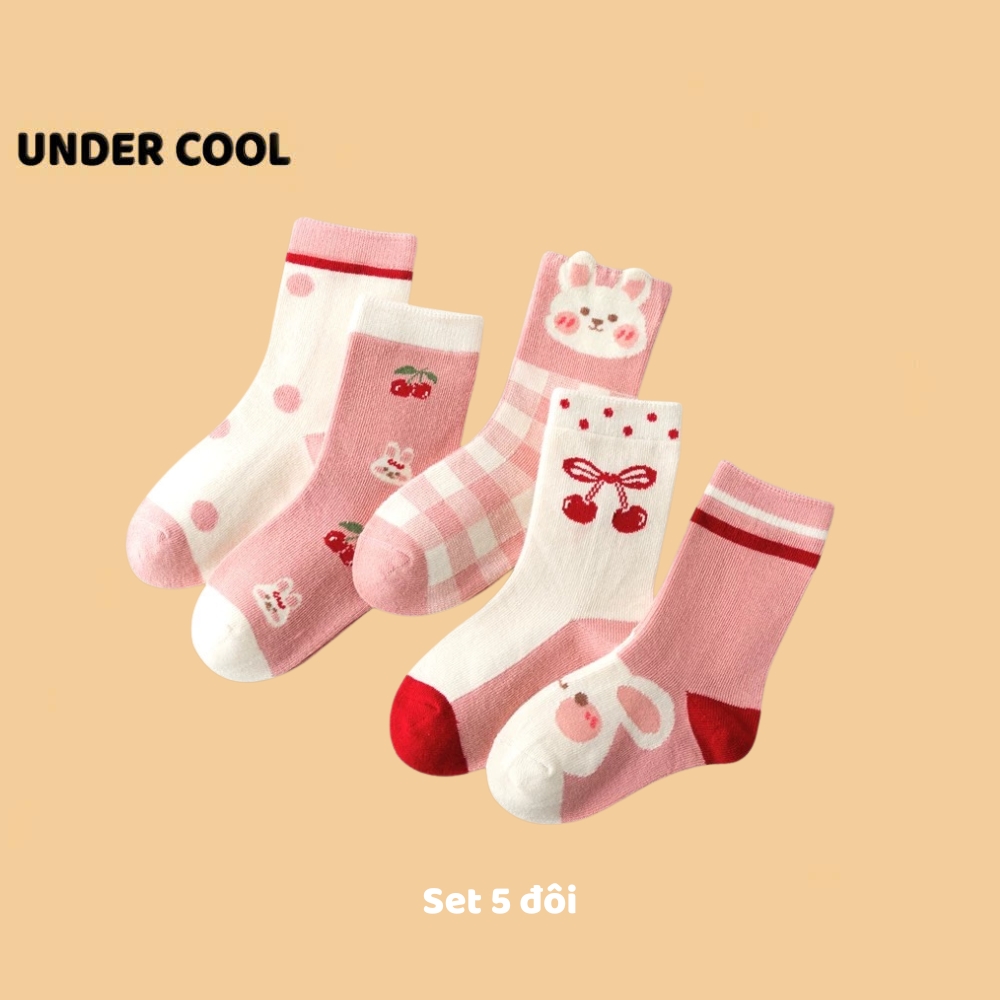 Set 5 Đôi Tất Vớ UNDERCOOL Cotton họa tiết Quả Cherry Thỏ Ô Vuông sợi bông mềm mại cho bé gái TC84