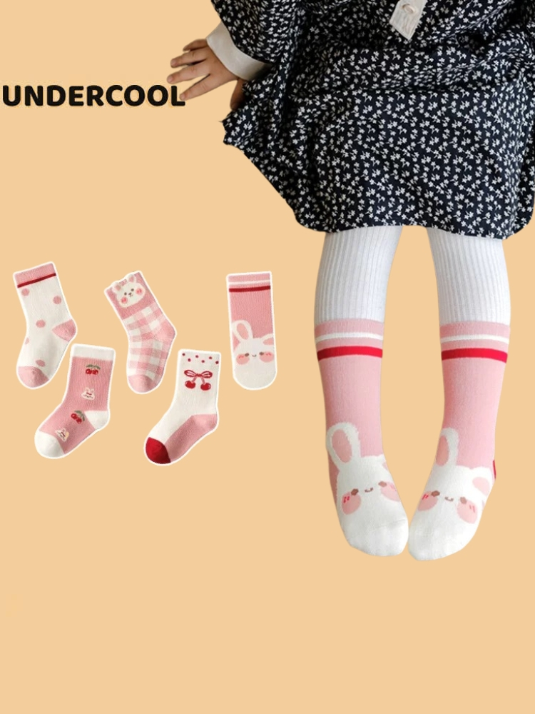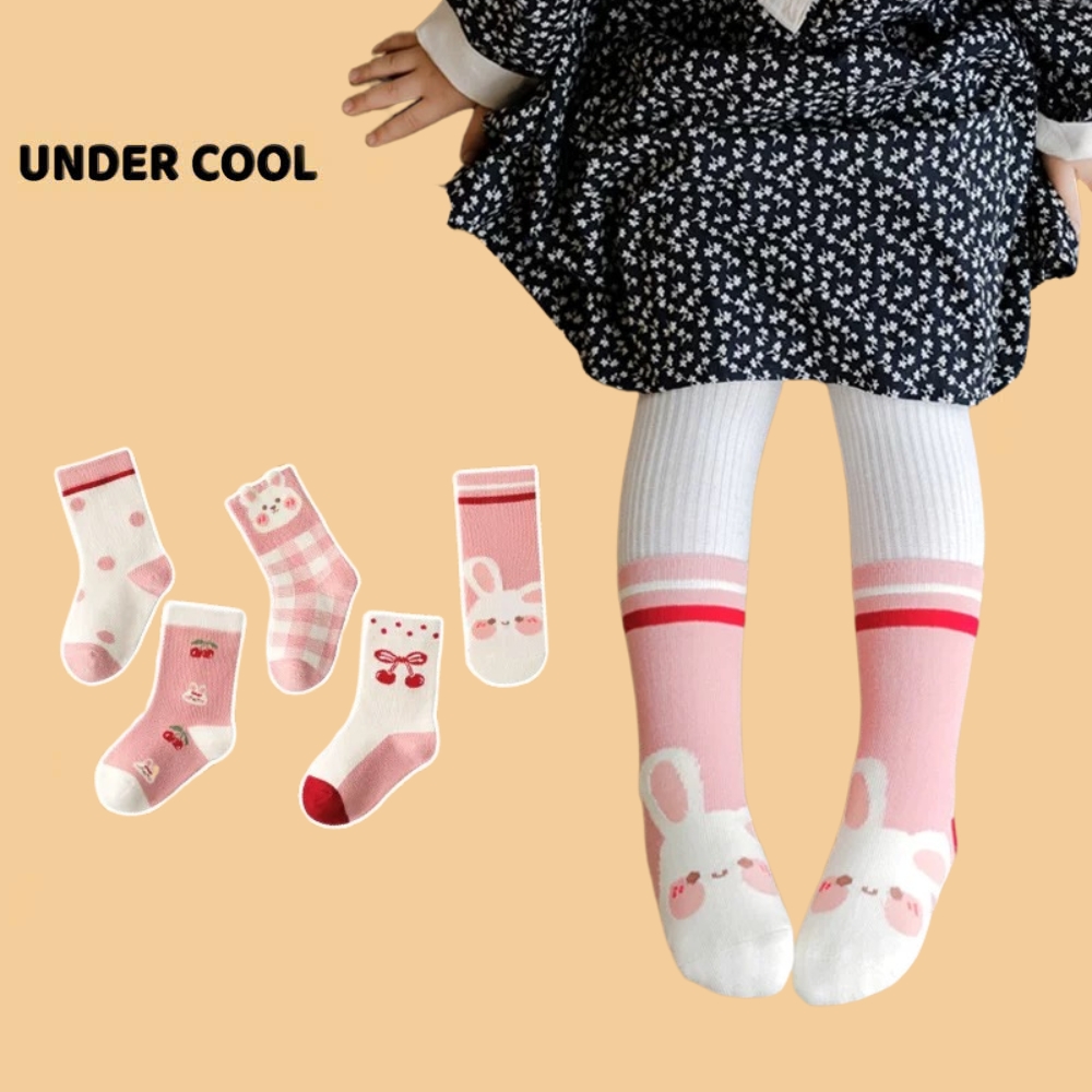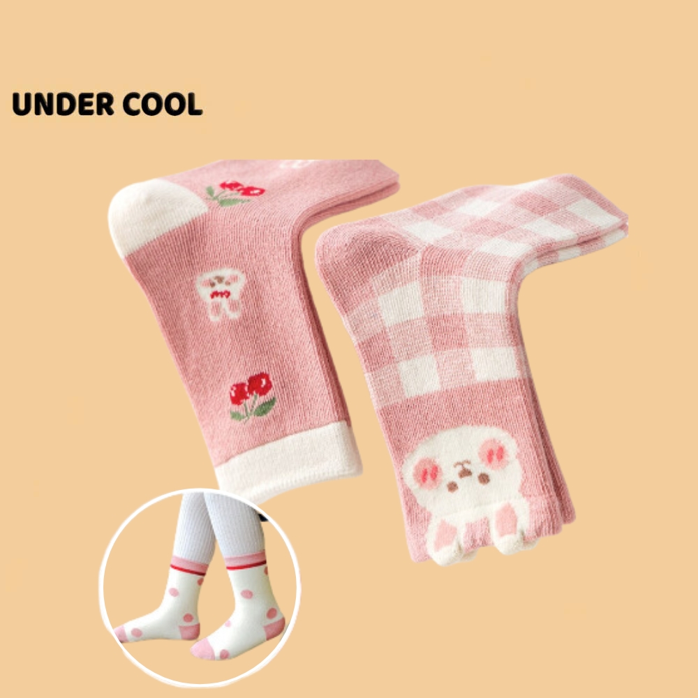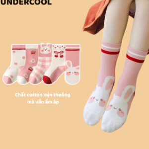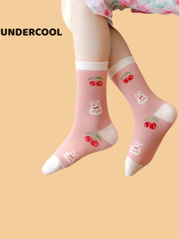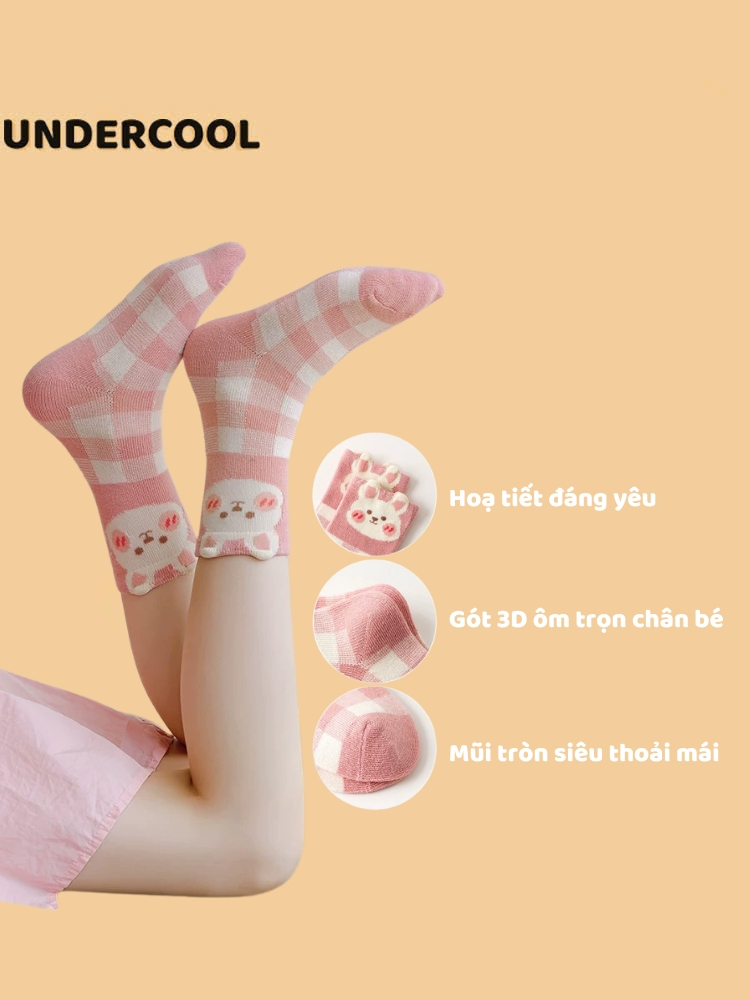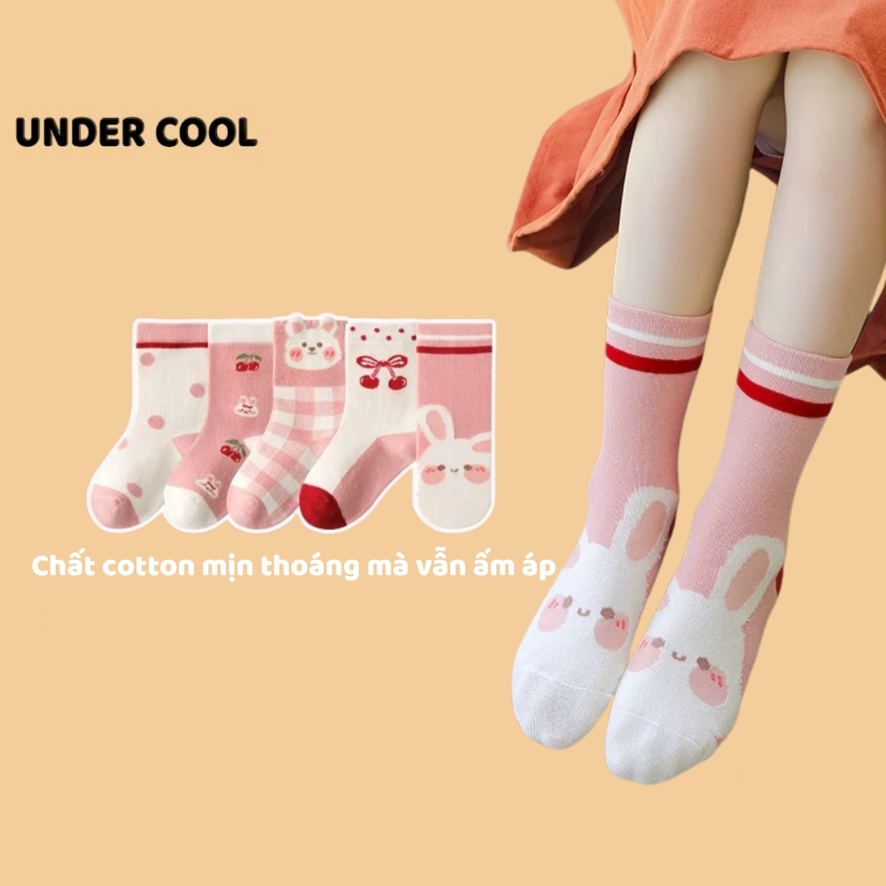 Set 5 Đôi Tất Vớ UNDERCOOL Cotton họa tiết Quả Cherry Thỏ Ô Vuông sợi bông mềm mại cho bé gái TC84