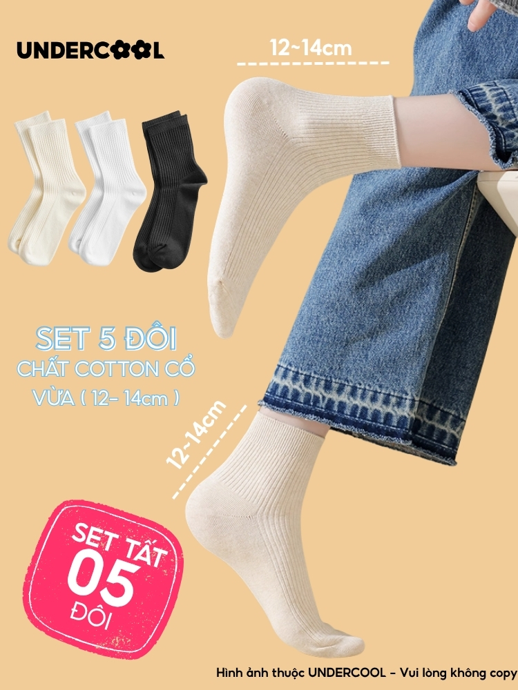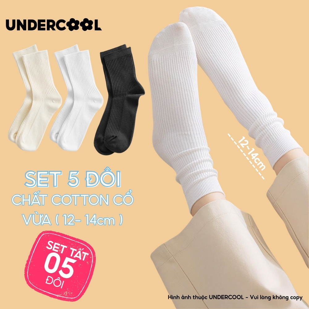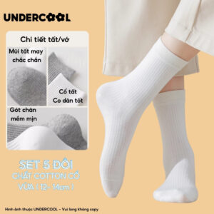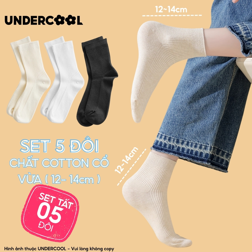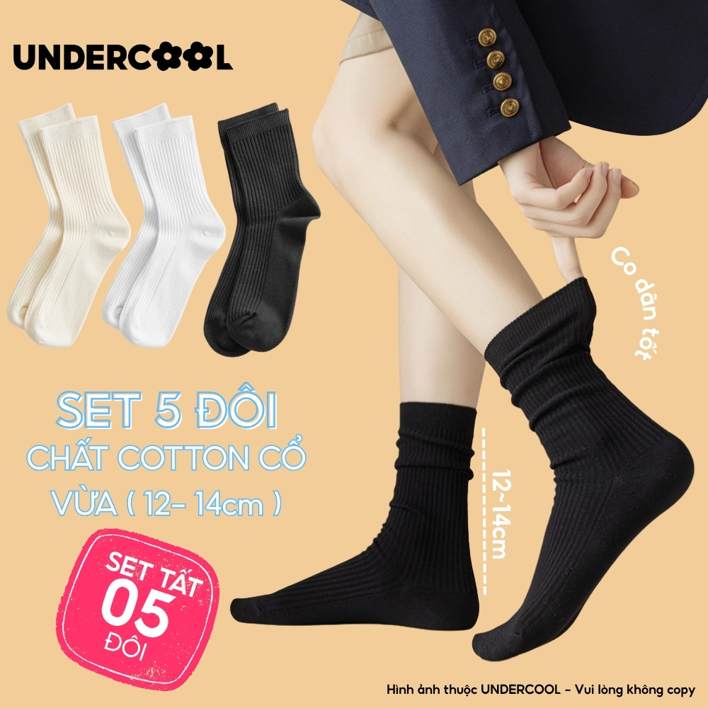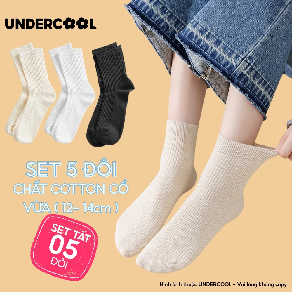Set 5 Đôi Vớ Tất Cổ Cao Nữ UNDERCOOL Uniex Cotton Mềm Dày, Không Xù, Thấm Hút Mồ Hôi, Thoáng Khí – Combo 5 đôi CB-TC02