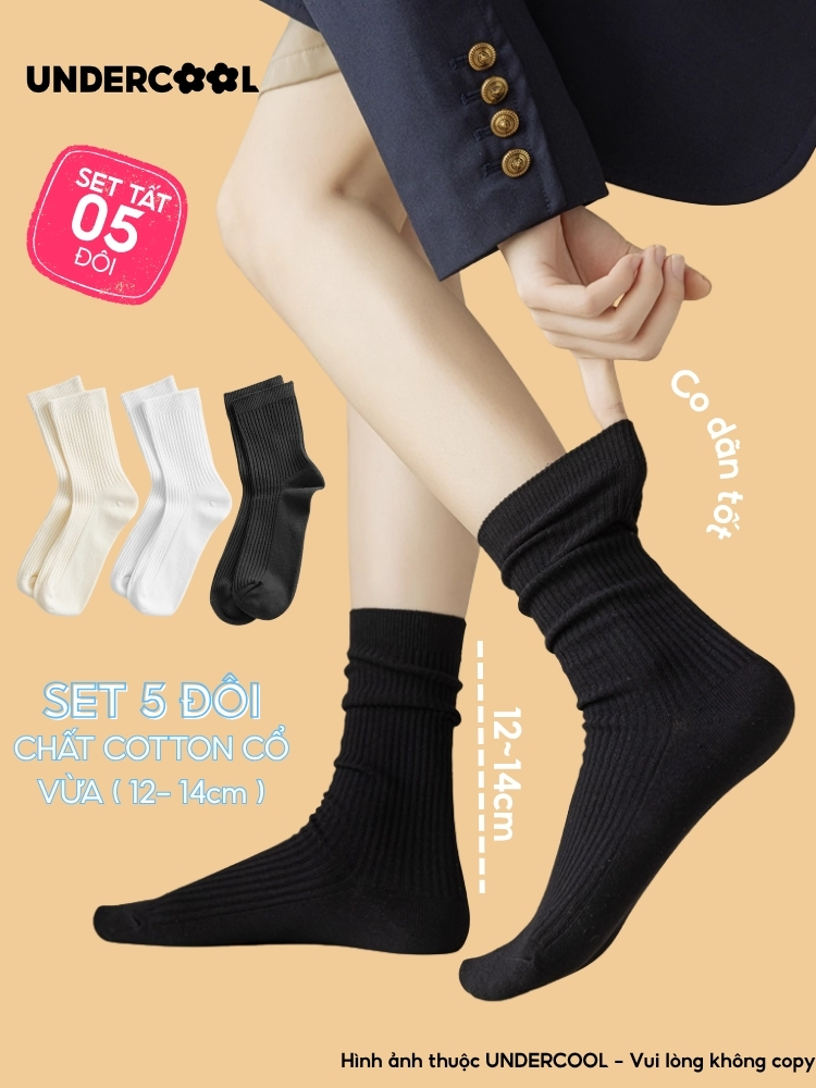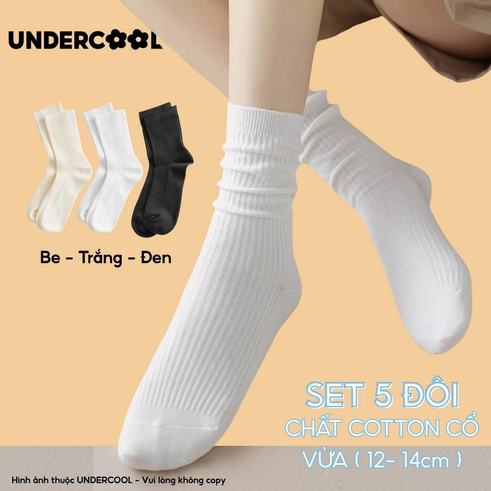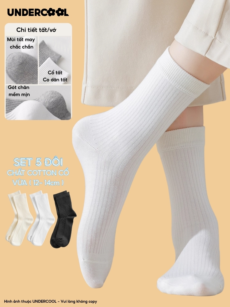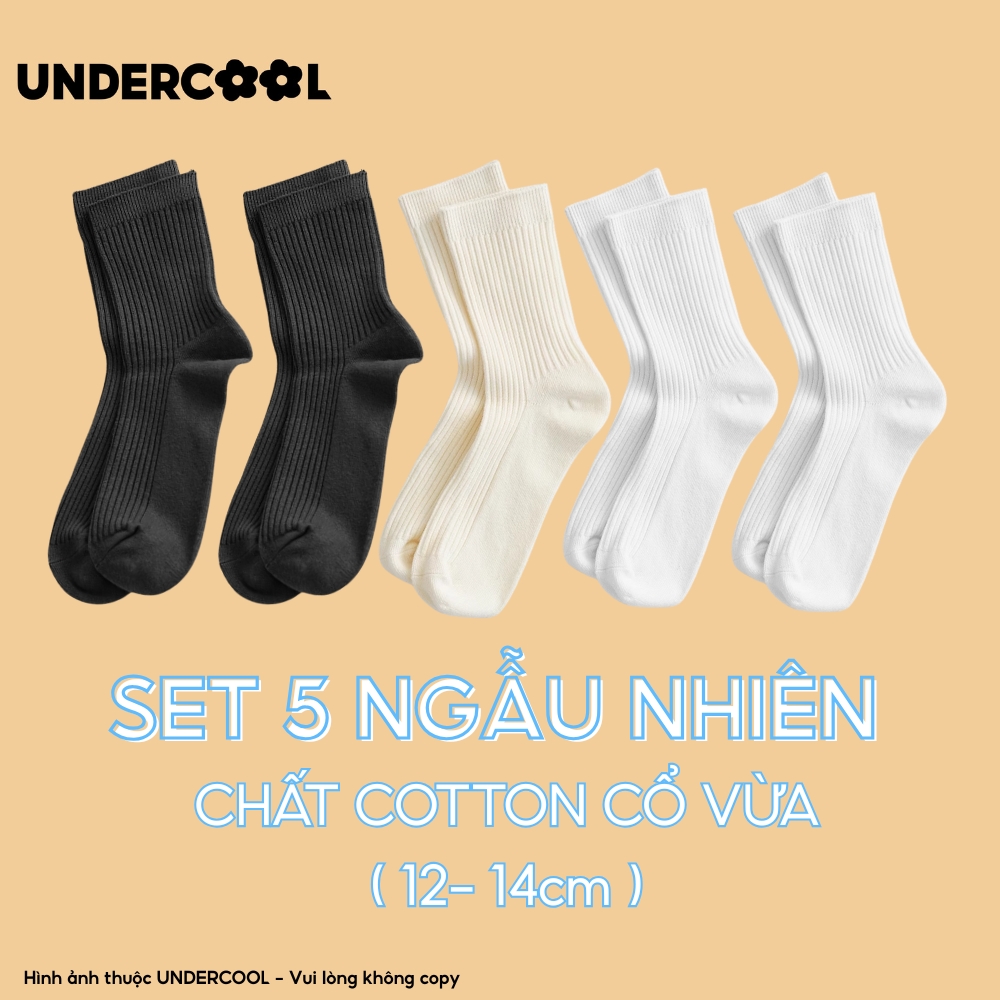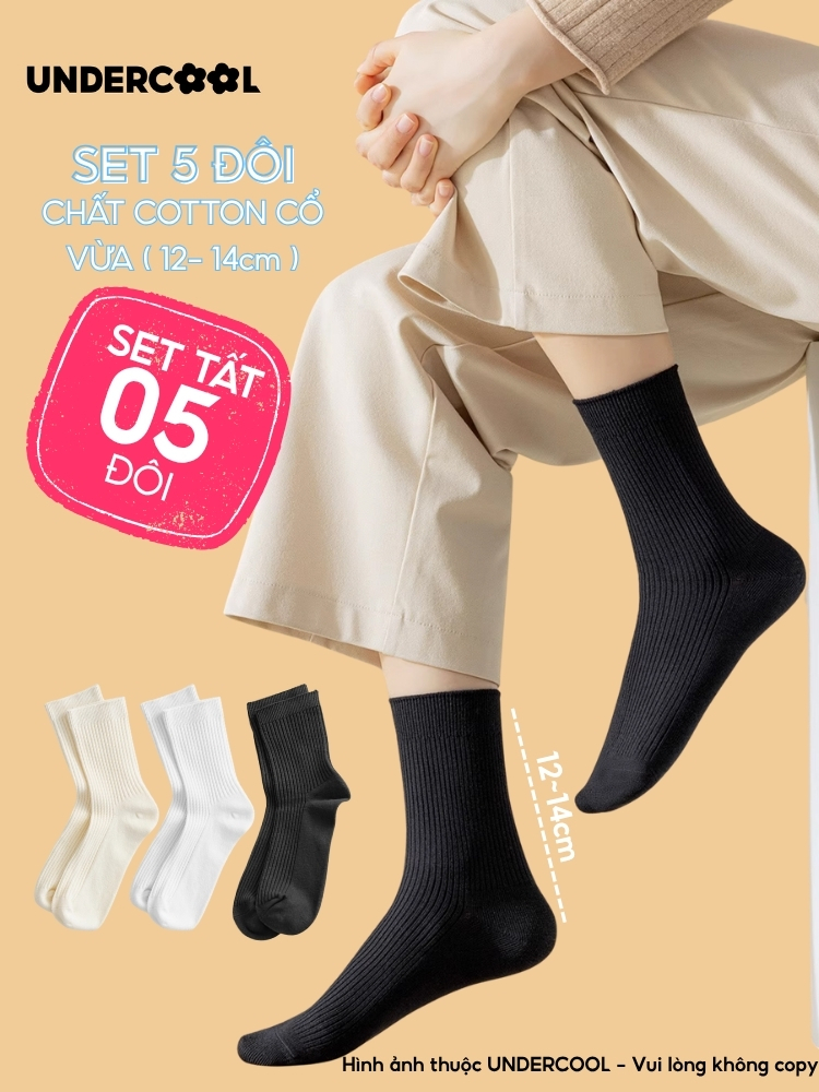 Set 5 Đôi Vớ Tất Cổ Cao Nữ UNDERCOOL Uniex Cotton Mềm Dày, Không Xù, Thấm Hút Mồ Hôi, Thoáng Khí – Combo 5 đôi CB-TC02