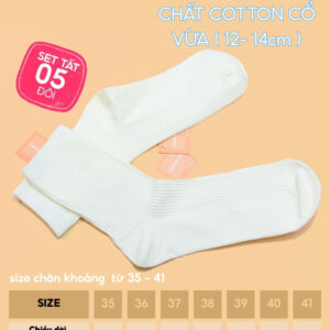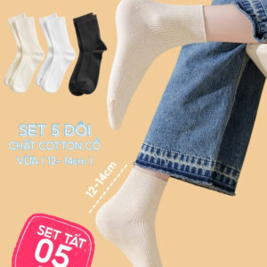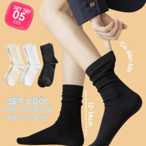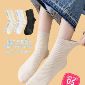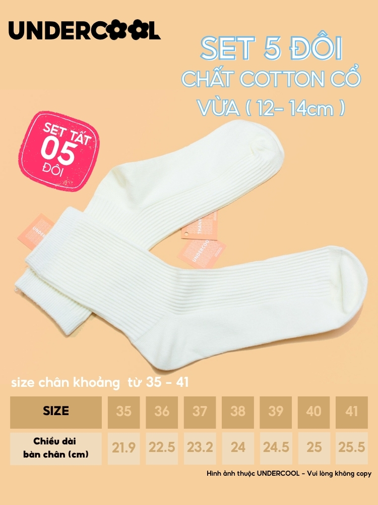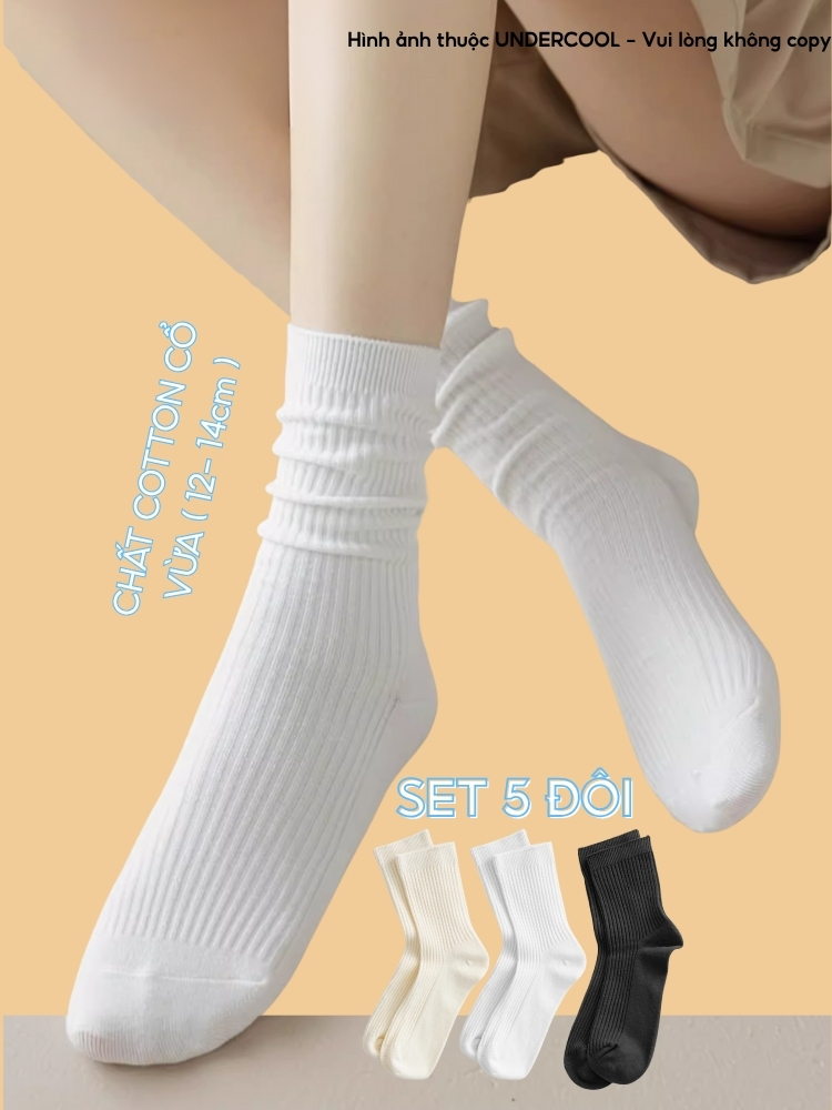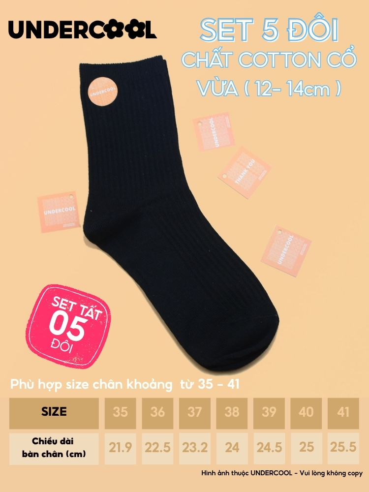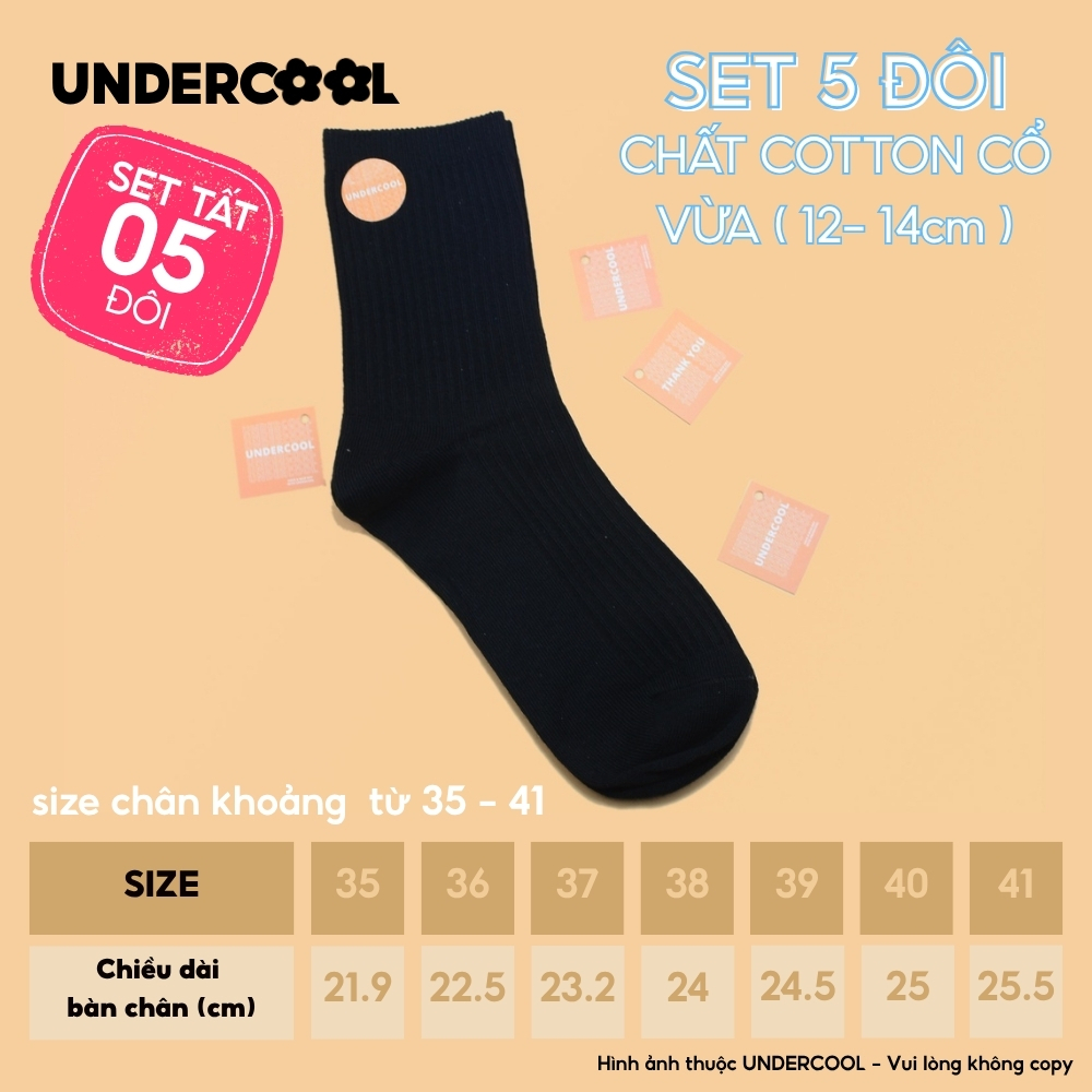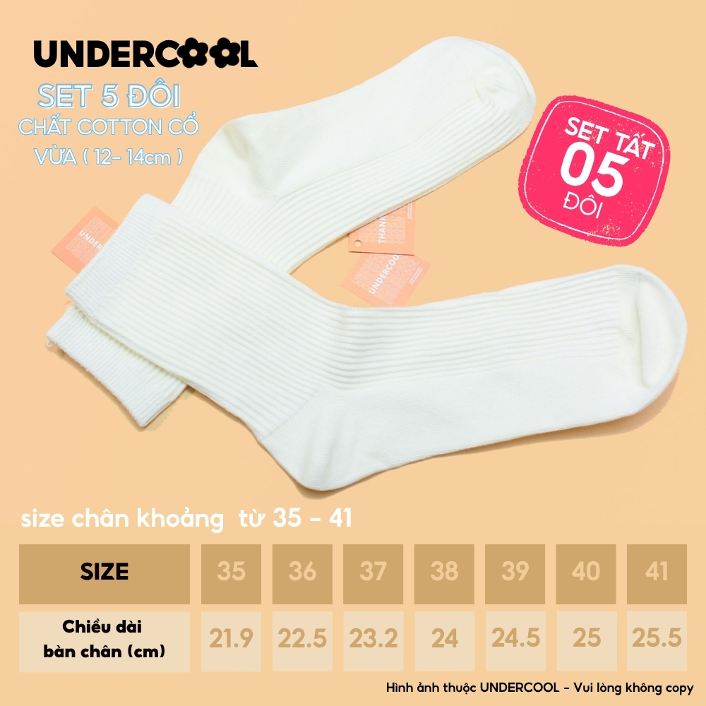 Set 5 Đôi Vớ Tất Cổ Cao Nữ UNDERCOOL Uniex Cotton Mềm Dày, Không Xù, Thấm Hút Mồ Hôi, Thoáng Khí – Combo 5 đôi CB-TC02