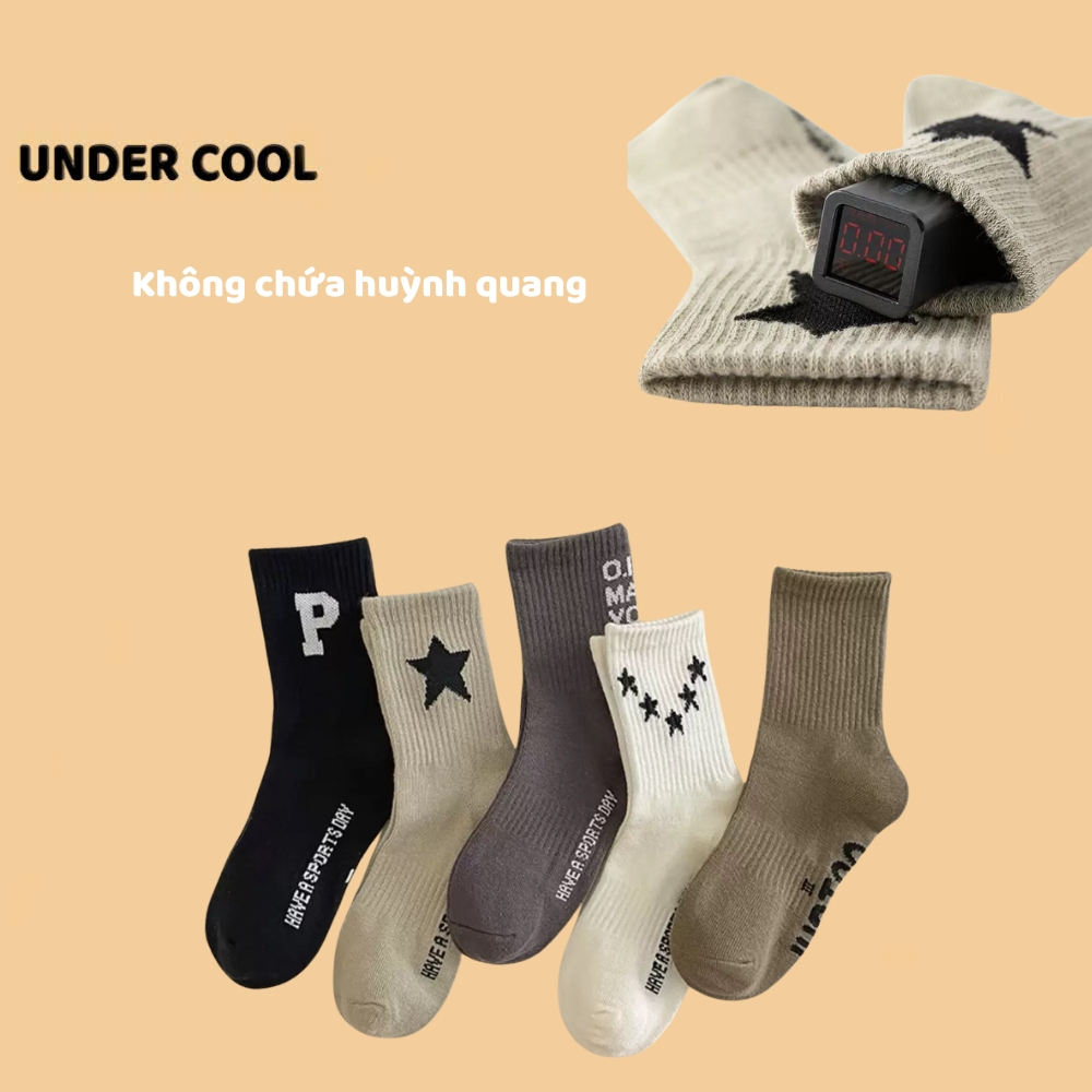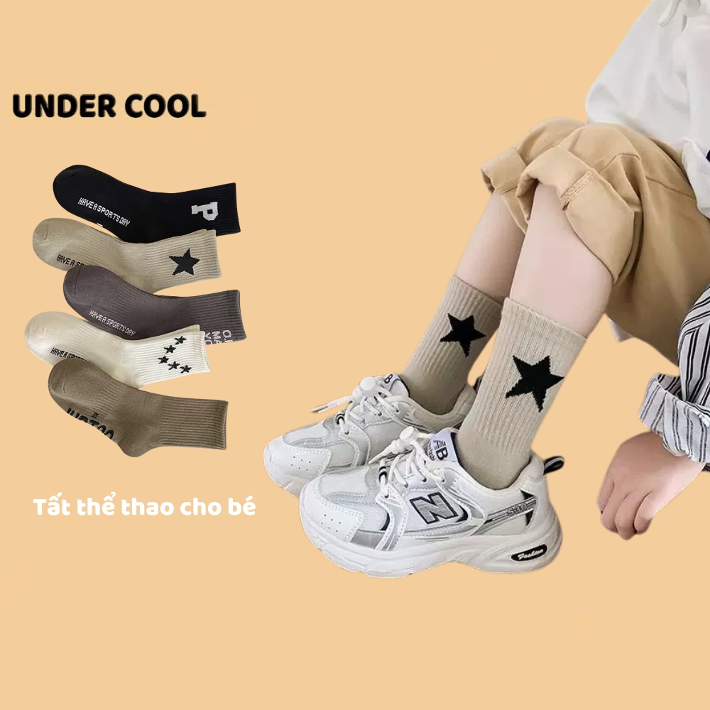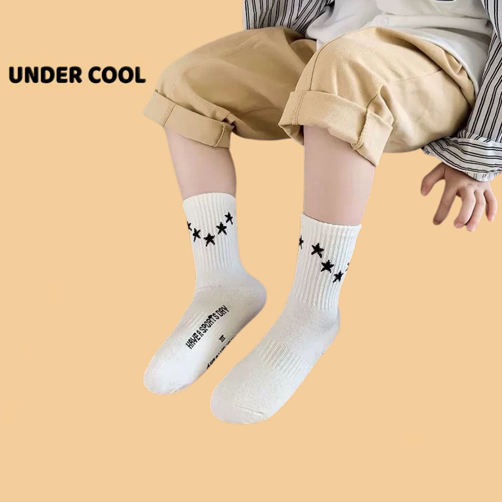 Set 5 Đôi Vớ Tất Trẻ Em Tone Nâu UNDERCOOL Phối Sao Chữ Phố không huỳnh quang an toàn cho bé TC86