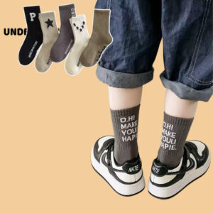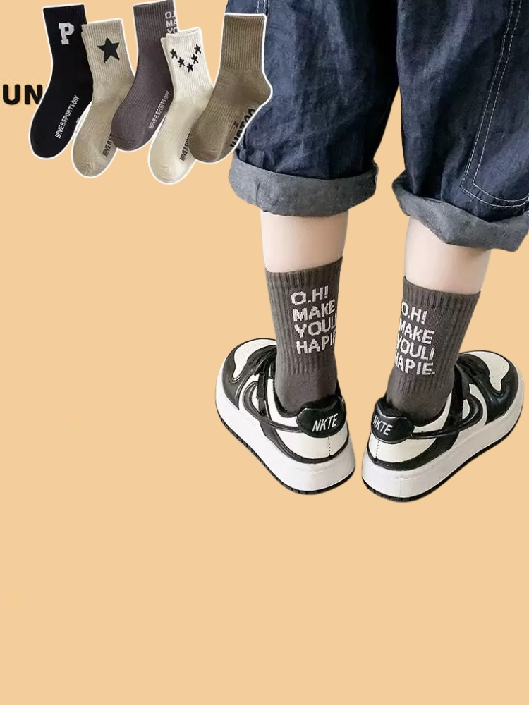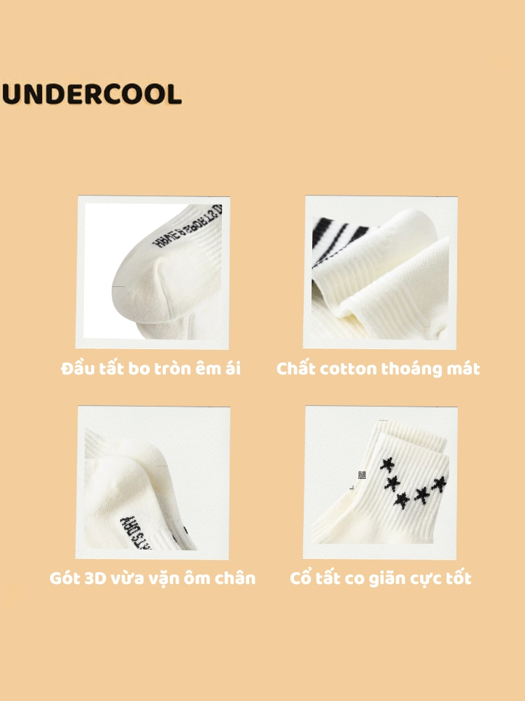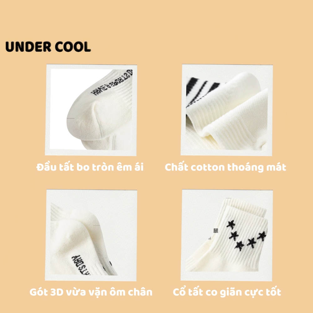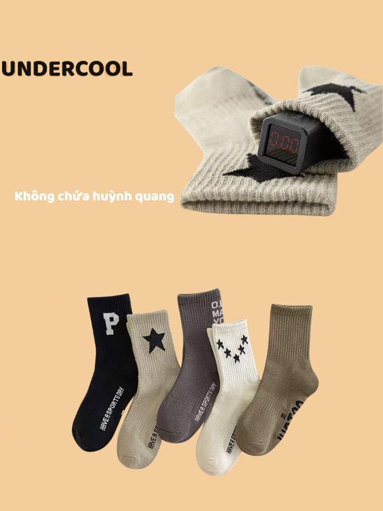 Set 5 Đôi Vớ Tất Trẻ Em Tone Nâu UNDERCOOL Phối Sao Chữ Phố không huỳnh quang an toàn cho bé TC86