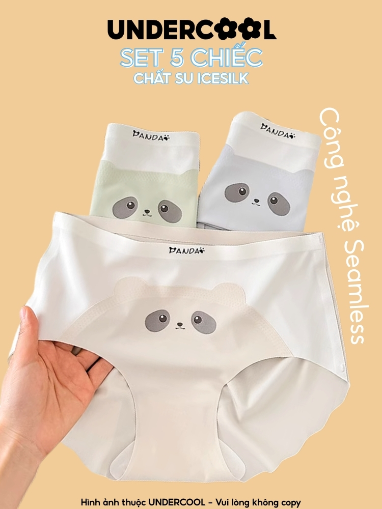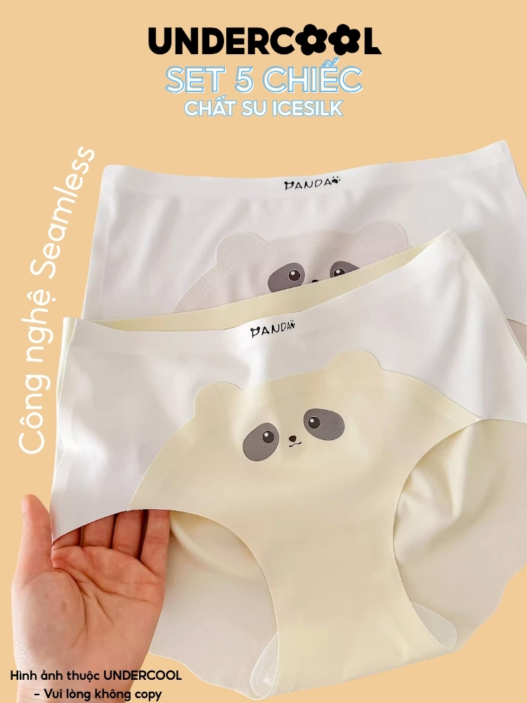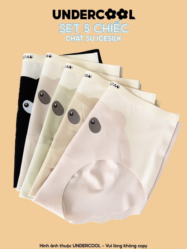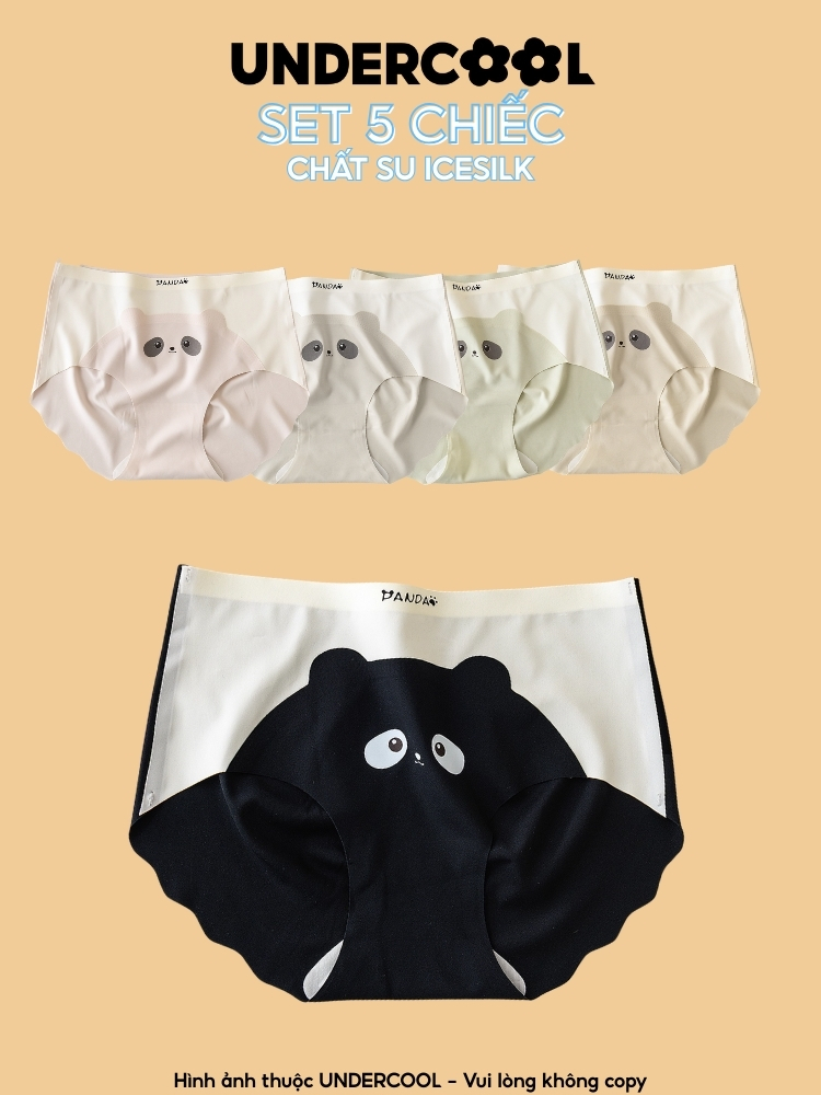 Set 5 Quần Lót Nữ Su Đúc Seamless UNDERCOOL Họa Tiết Gấu Panda Mềm Mịn Thoáng Mát Nhẹ, Không Viền, Co Giãn Tốt CB-QL60