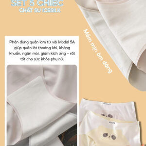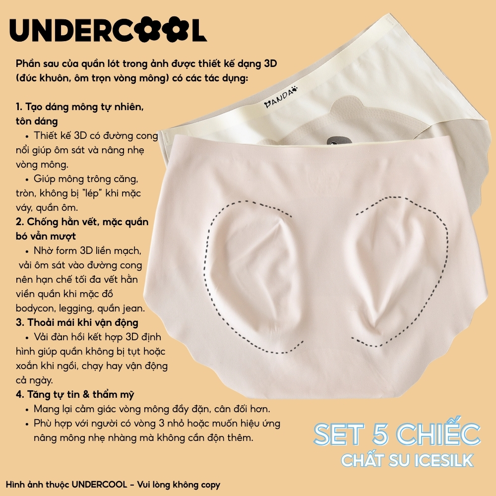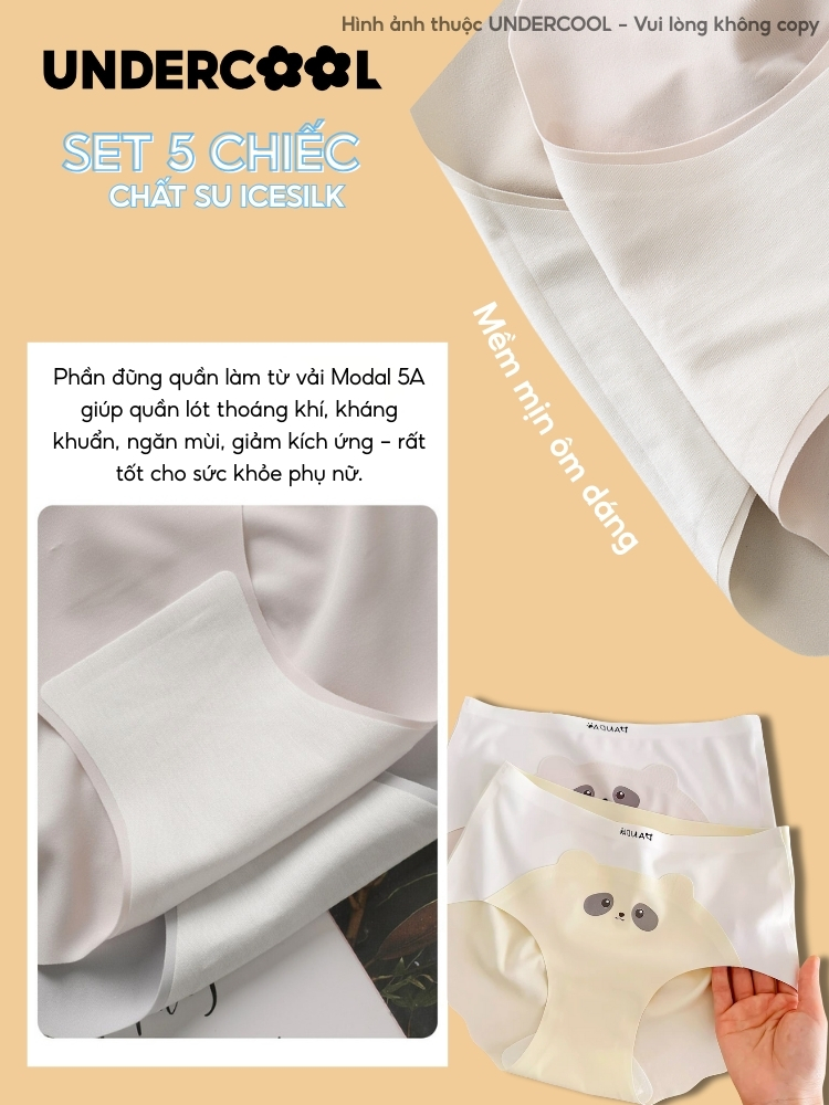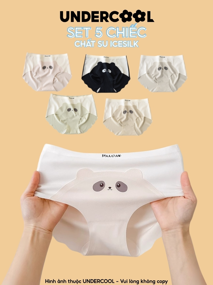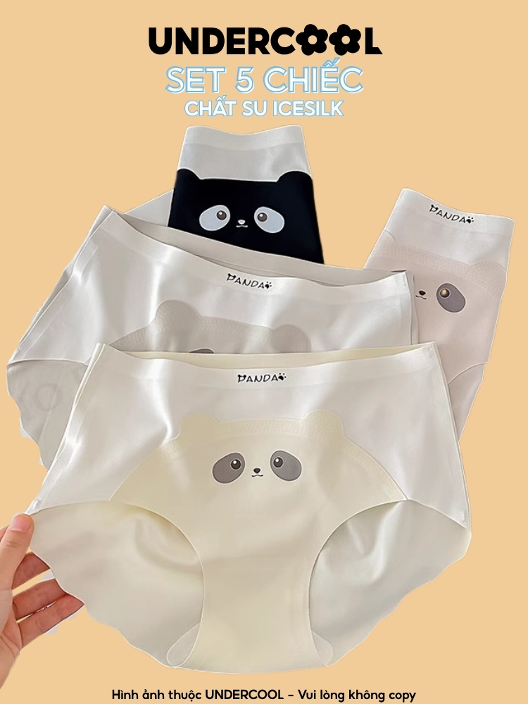 Set 5 Quần Lót Nữ Su Đúc Seamless UNDERCOOL Họa Tiết Gấu Panda Mềm Mịn Thoáng Mát Nhẹ, Không Viền, Co Giãn Tốt CB-QL60