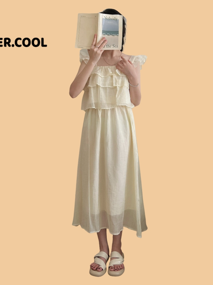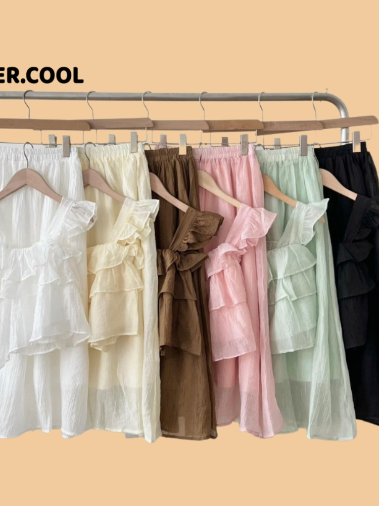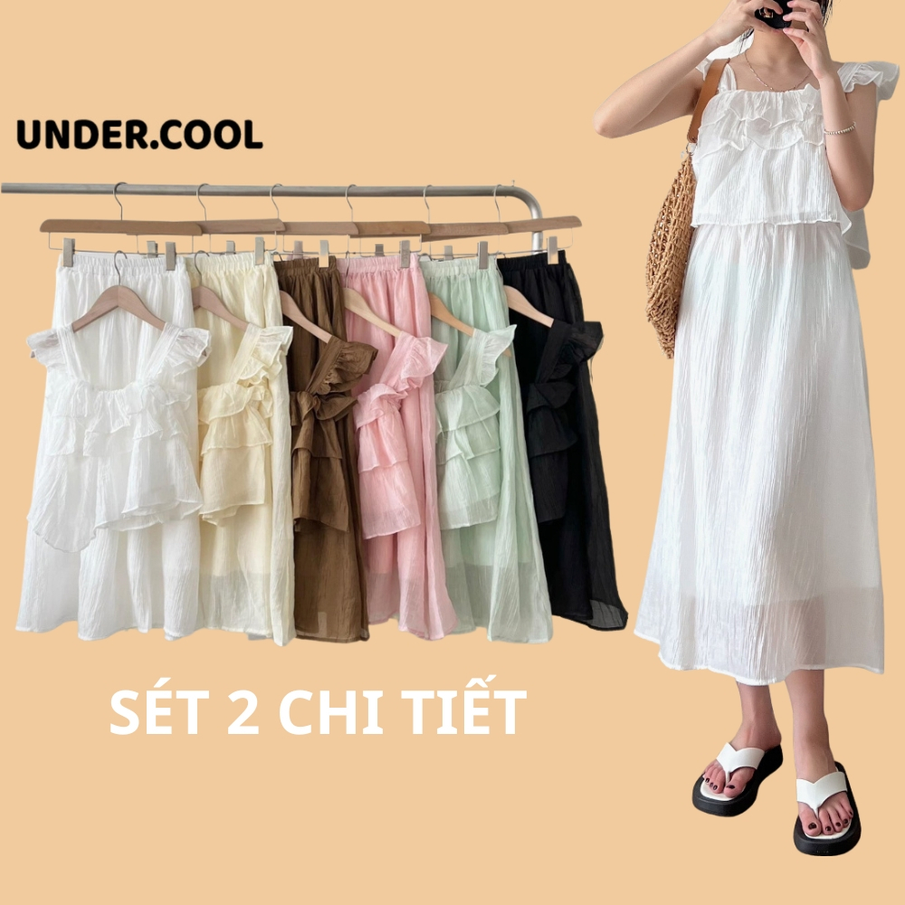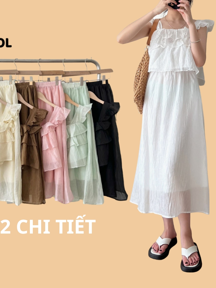 Set Lụa Voan Áo Hai Dây Kèm Váy Quảng Châu Đi Biển Siêu Xinh, Hàng Loại 1, Freesize Dưới 57kg
