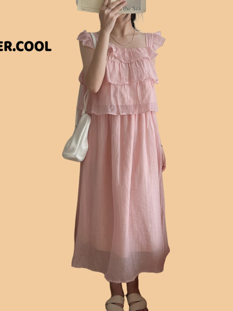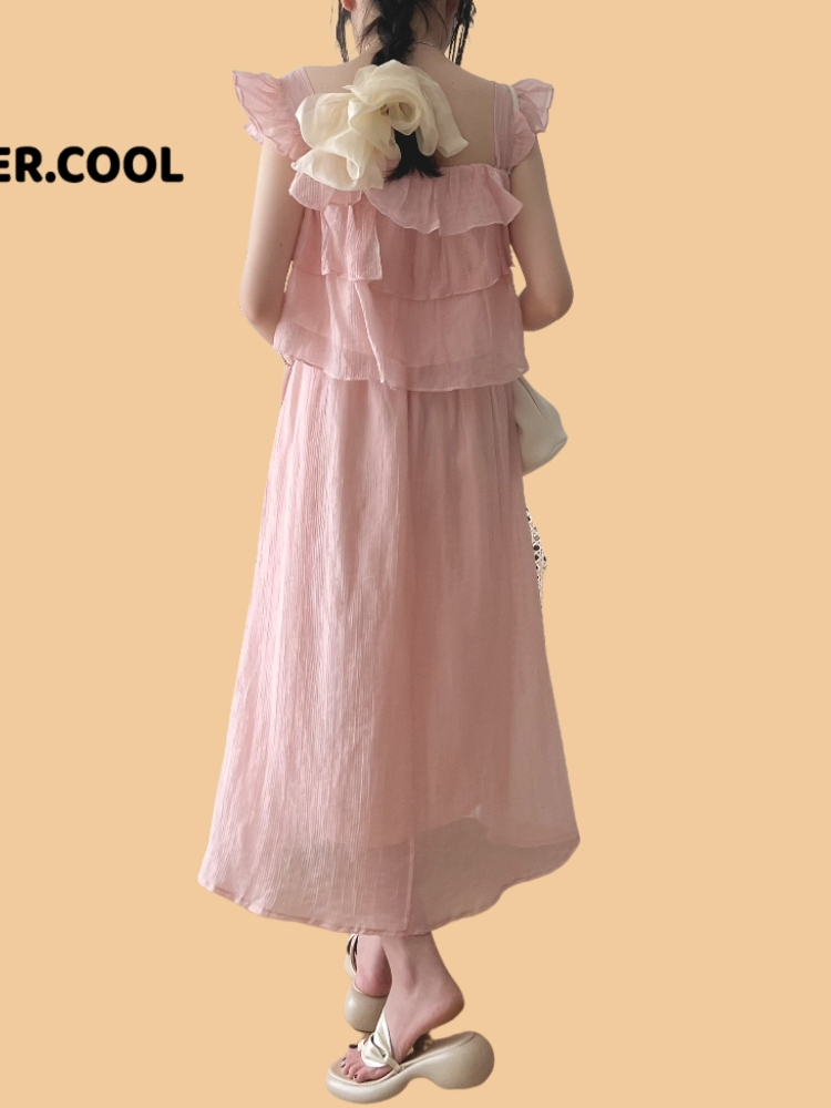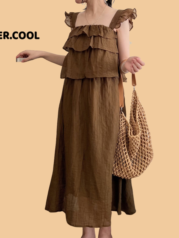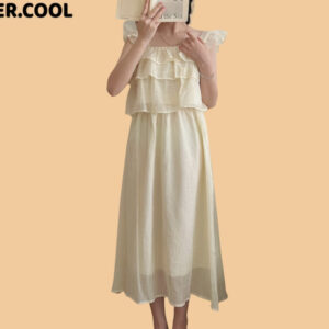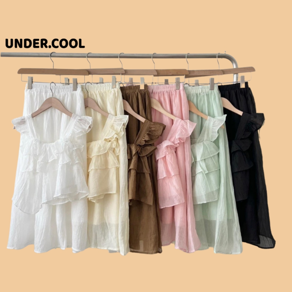 Set Lụa Voan Áo Hai Dây Kèm Váy Quảng Châu Đi Biển Siêu Xinh, Hàng Loại 1, Freesize Dưới 57kg