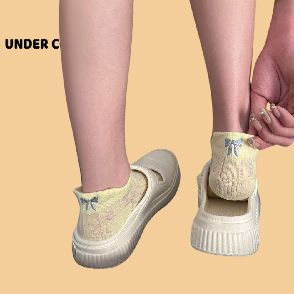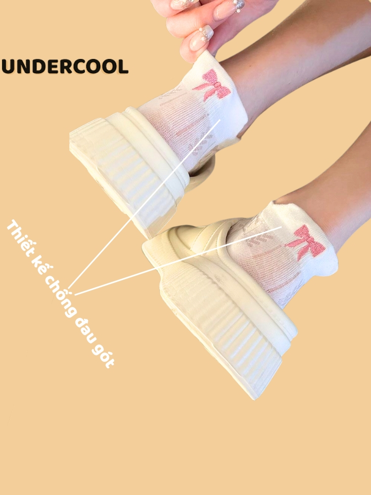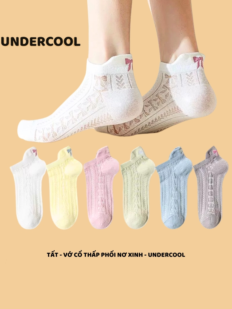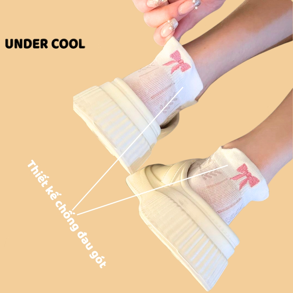 Tất Gót Nơ UNDERCOOL Tất Xuân Hè Mỏng Hàn Quốc Vớ cổ thấp nữ cotton cao cấp hút ẩm thoáng khí khử mùi hôi chân TC49