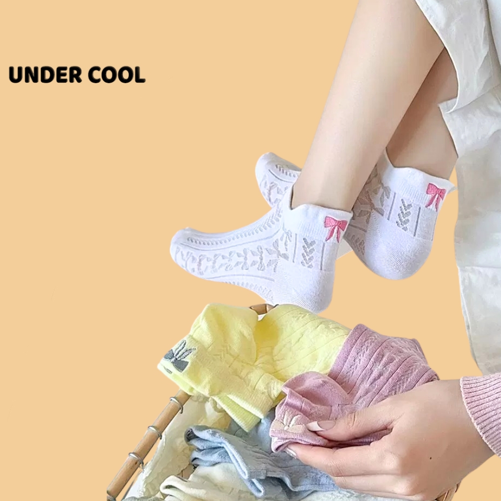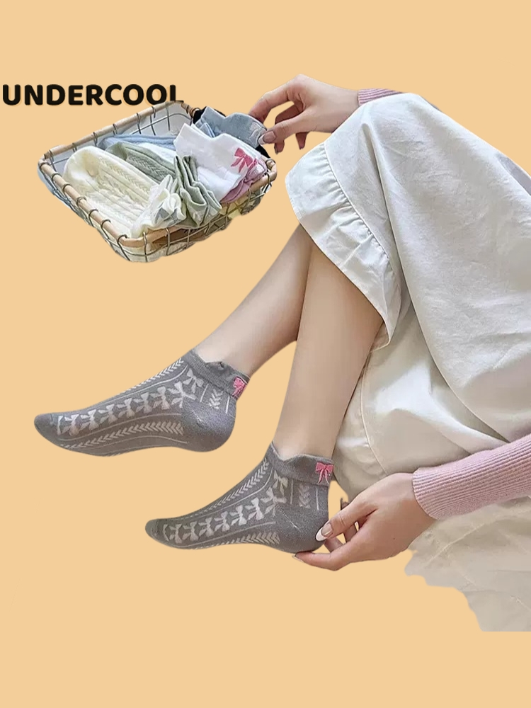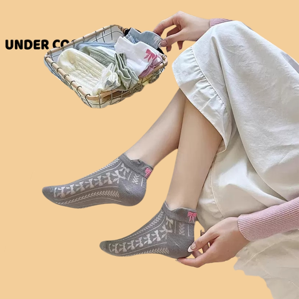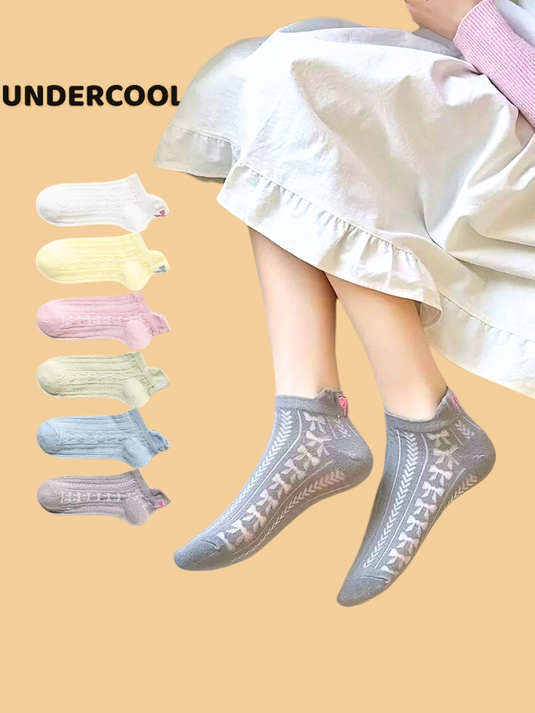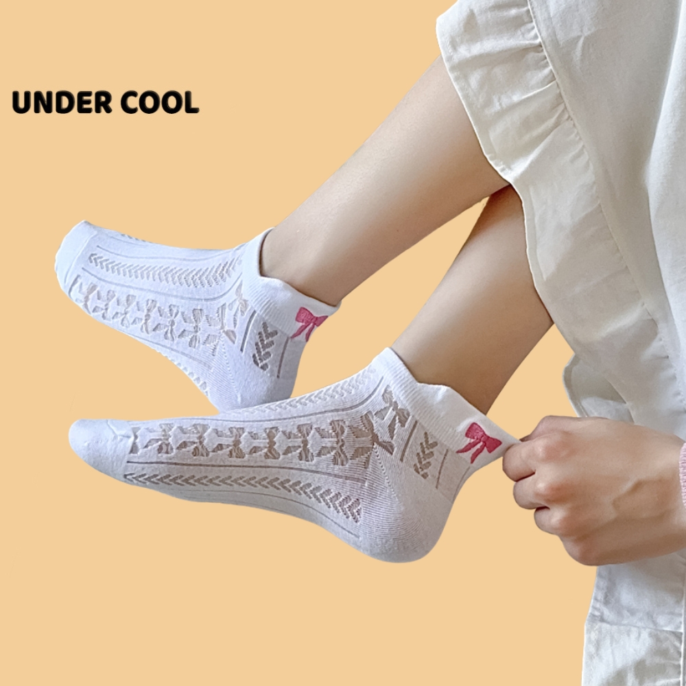 Tất Gót Nơ UNDERCOOL Tất Xuân Hè Mỏng Hàn Quốc Vớ cổ thấp nữ cotton cao cấp hút ẩm thoáng khí khử mùi hôi chân TC49