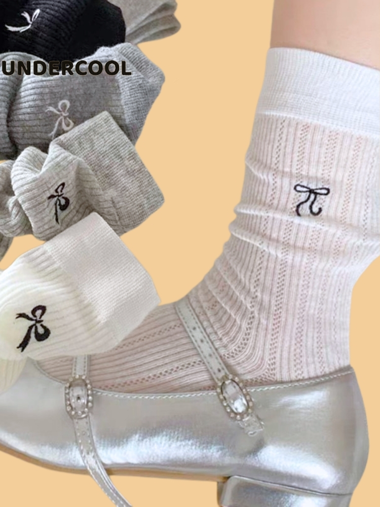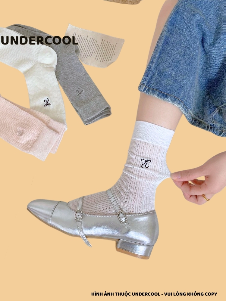 Tất nữ mỏng họa tiết nơ trendy UNDERCOOL , thoáng khí, thấm hút mồ hôi, vớ nơ xinh tiểu thư mùa hè