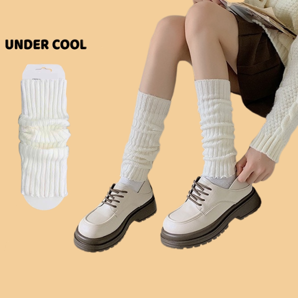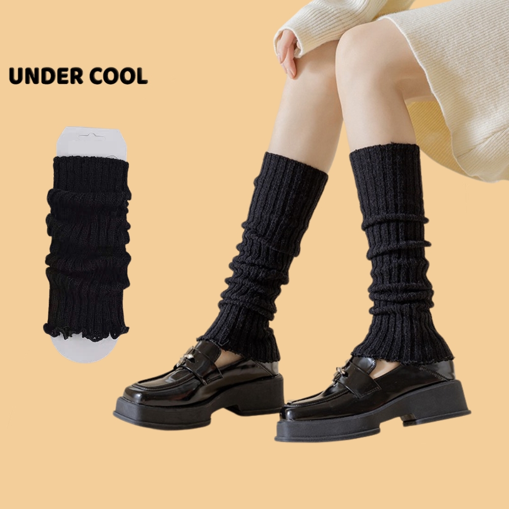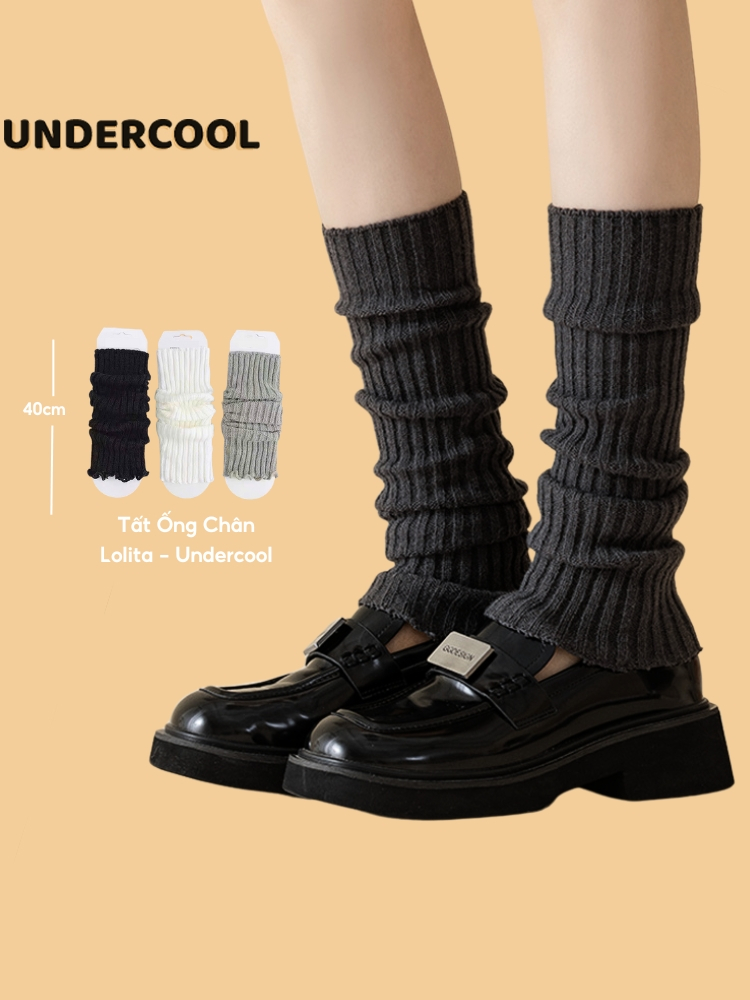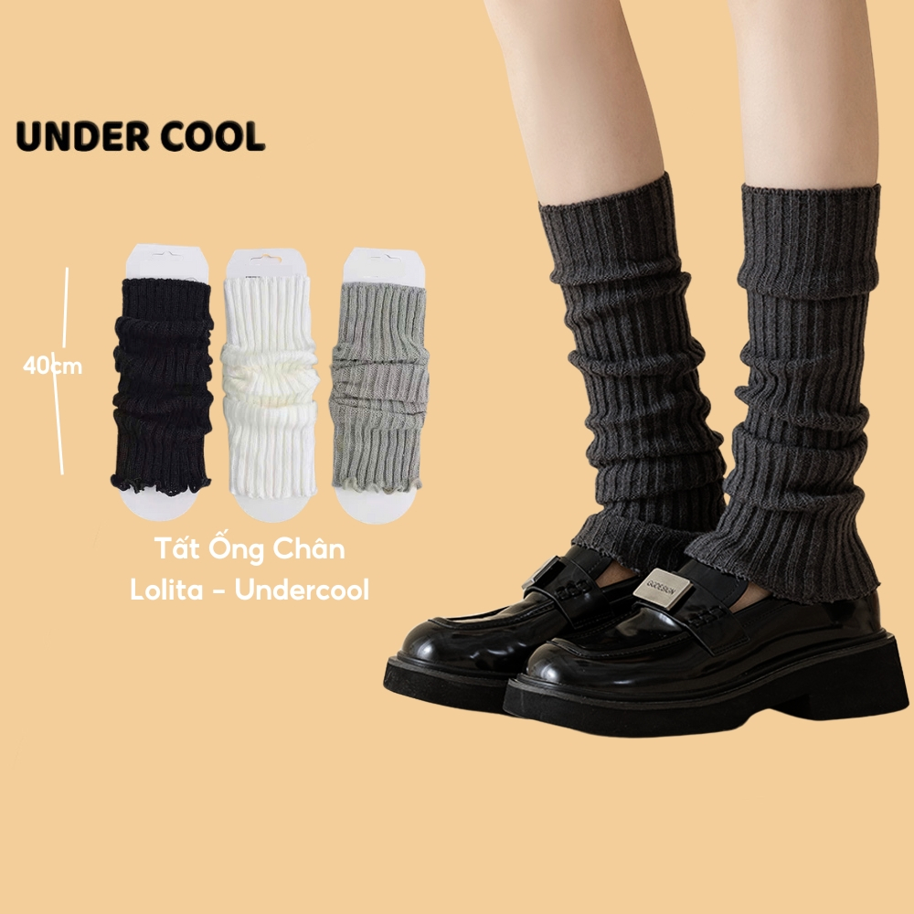 Tất ống chân len UNDERCOOL chất dệt kim đen trắng ghi giữ ấm chân mùa đông phong cách y2k Lolita Nhật Bản TC79