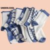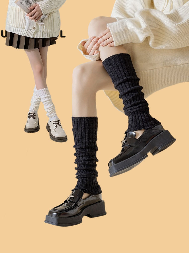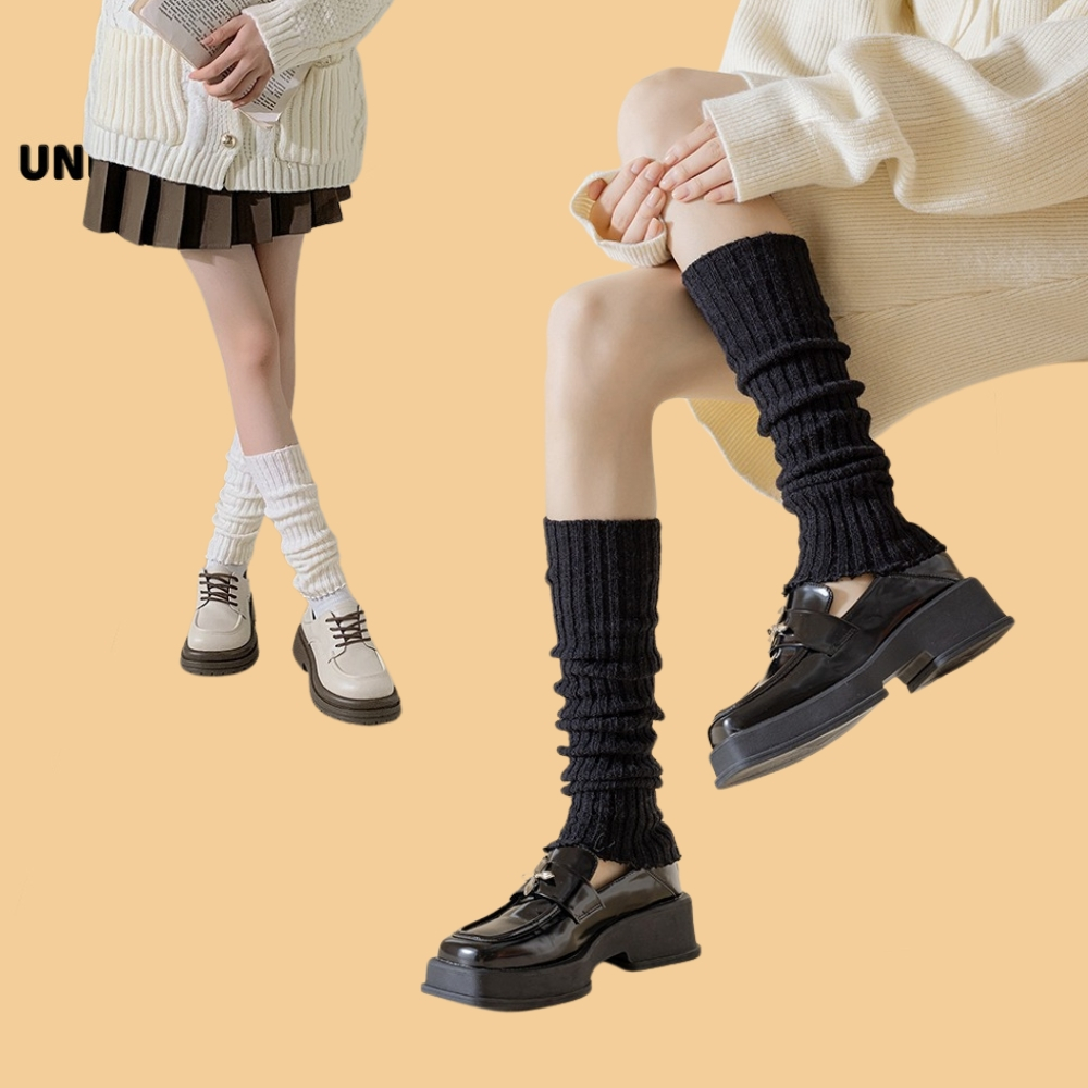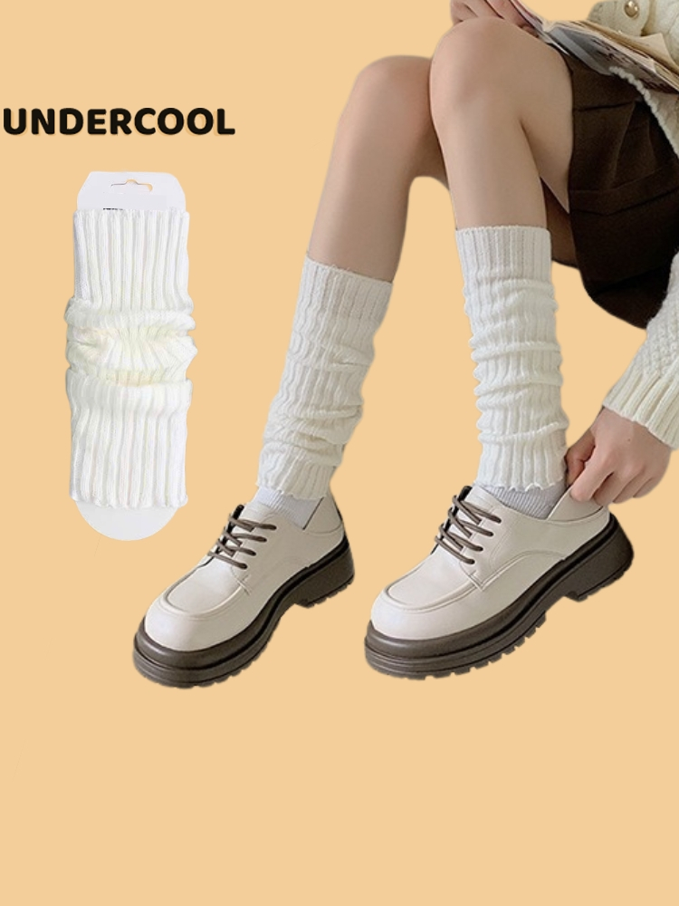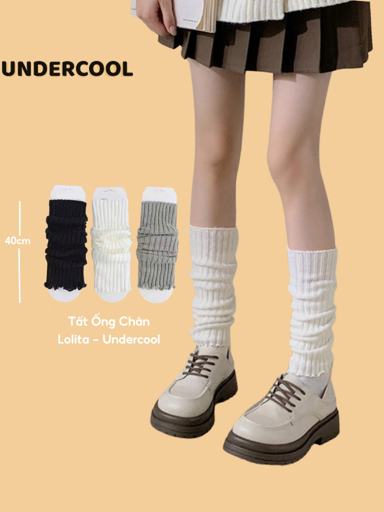 Tất ống chân len UNDERCOOL chất dệt kim đen trắng ghi giữ ấm chân mùa đông phong cách y2k Lolita Nhật Bản TC79