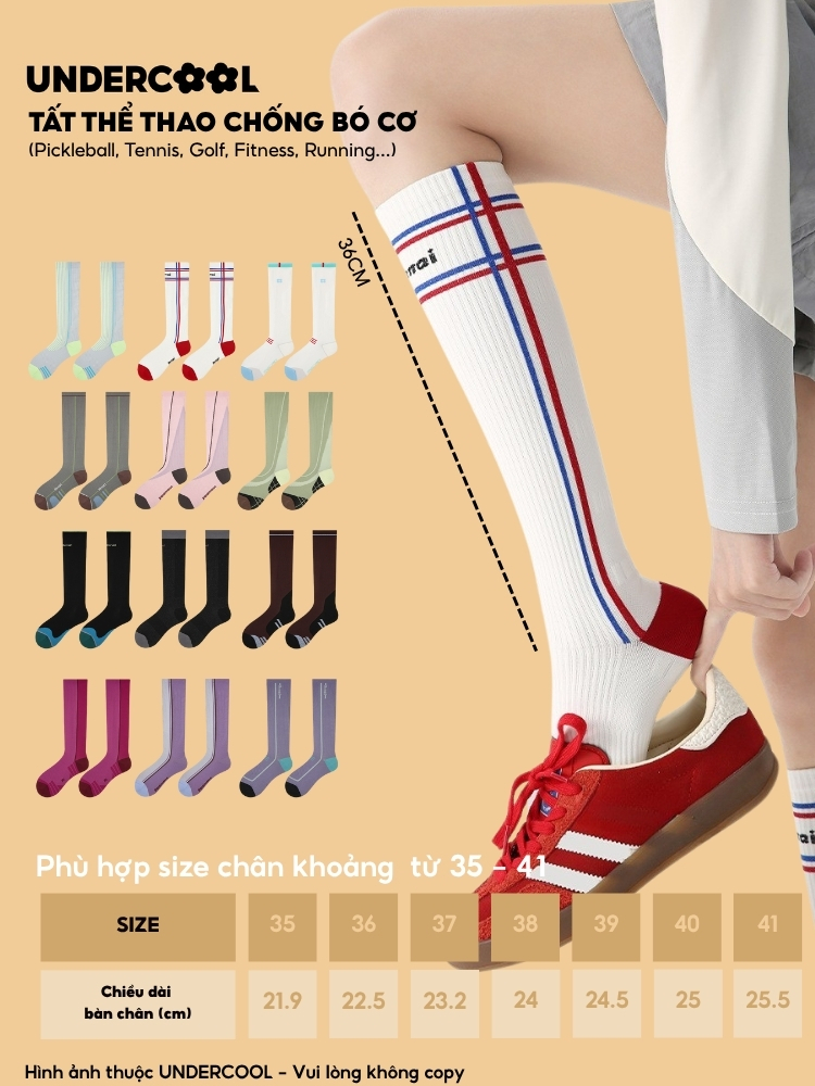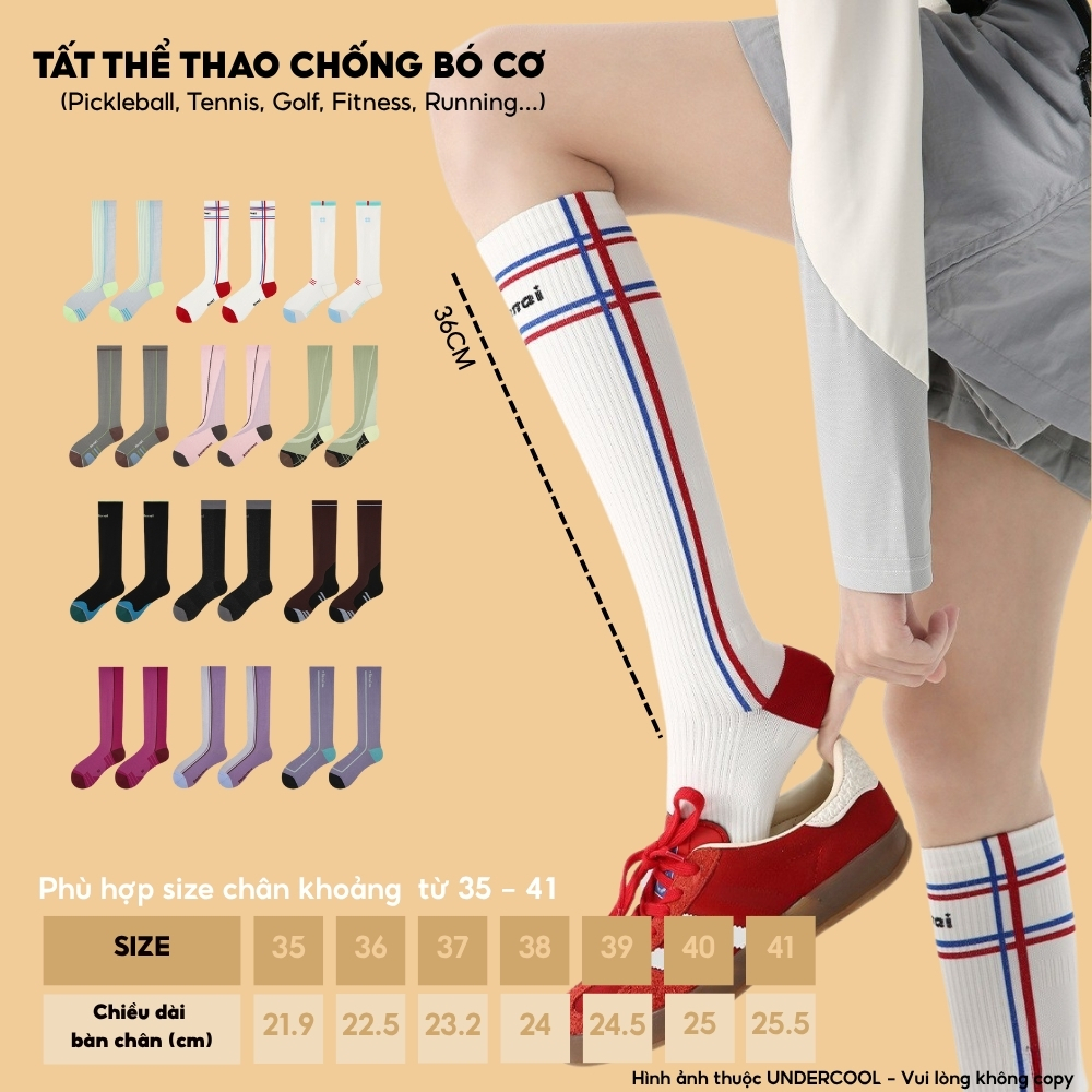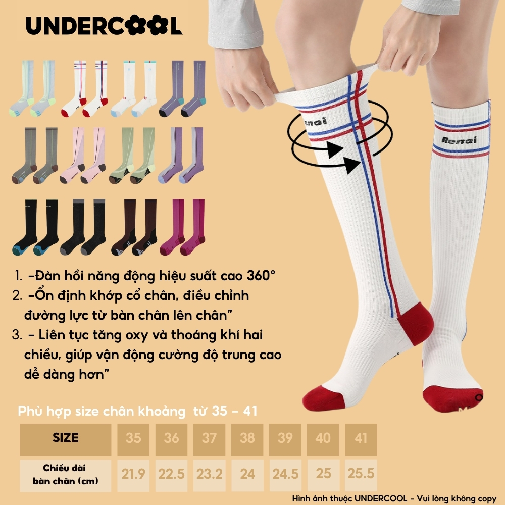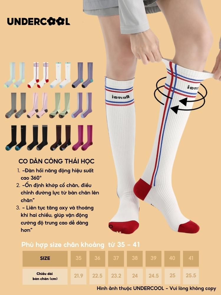 MÔ TẢ SẢN PHẨM – Tất/Vớ Nữ Thể Thao Cao Cổ Đến Gối UNDERCOOL TC94