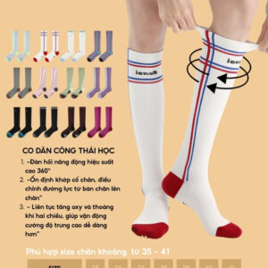 Tất nén bắp chân (graduated compression) giúp hỗ trợ tuần hoàn, giảm rung cơ khi vận động và hạn chế mỏi chân. Phù hợp chạy bộ – gym – tennis – pickleball – yoga – golf – đi làm/đứng lâu.