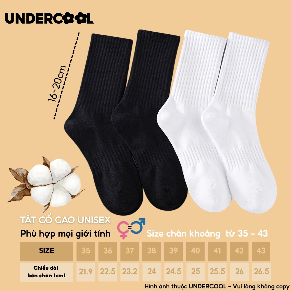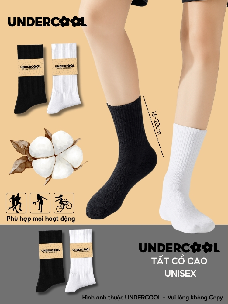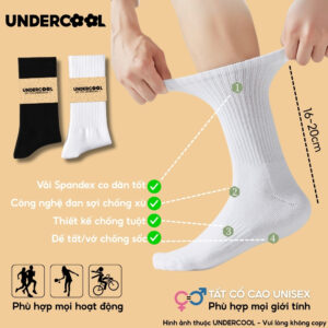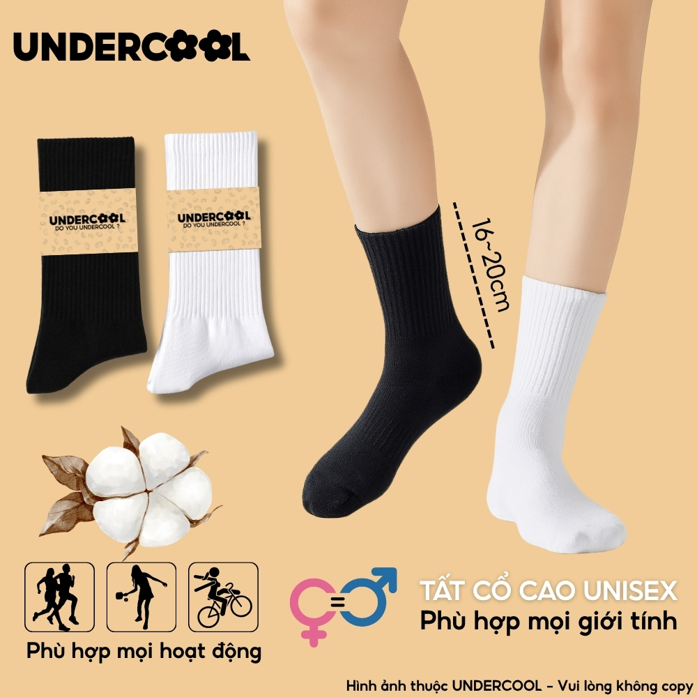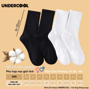 Tất Vớ Nữ Nam Cổ Cao Cotton UNDERCOOL Thoáng Mát Chống Hôi Chân, Co Giãn Tốt, Vớ Thể Thao Dày Dặn Basic TC91